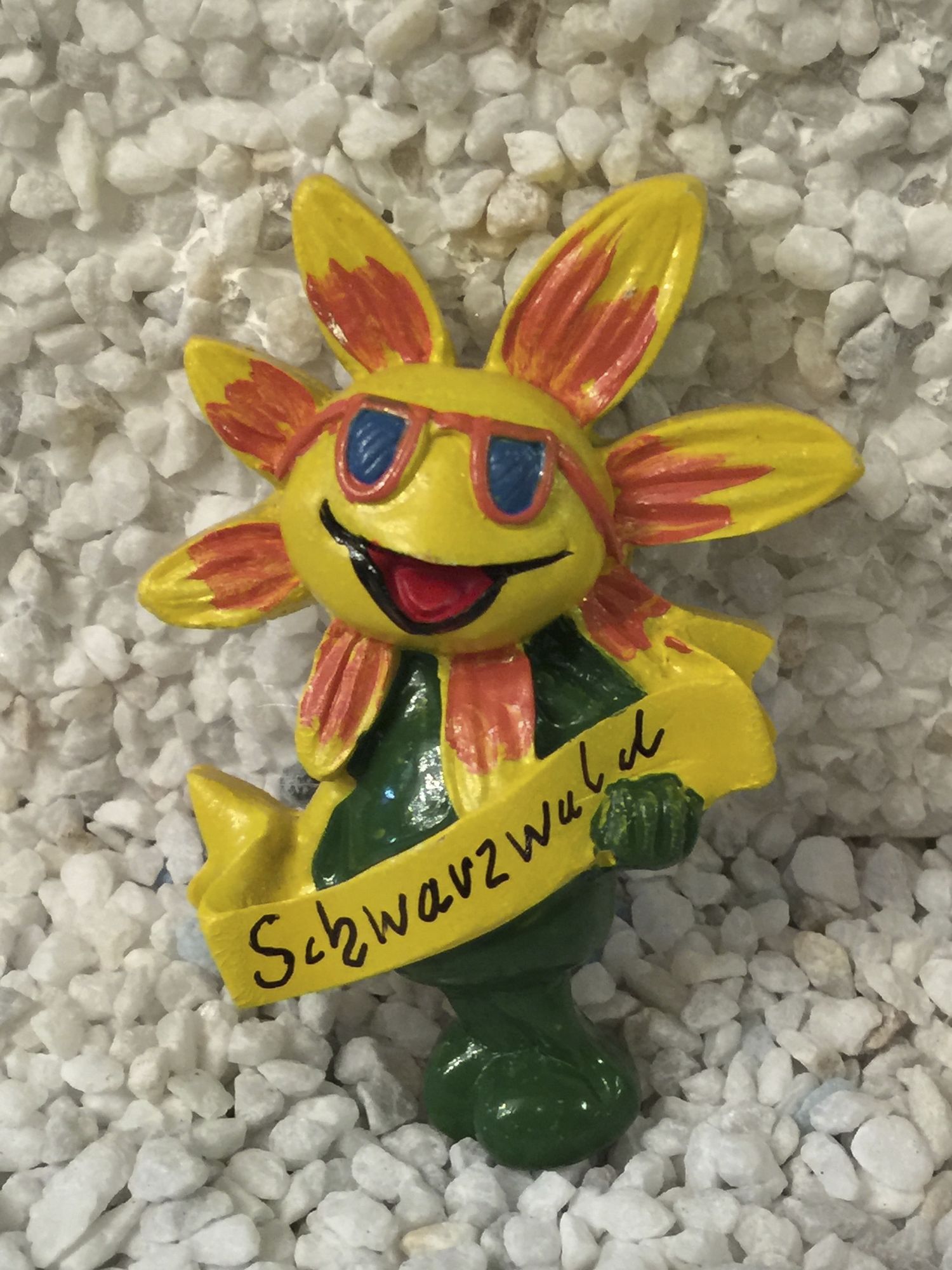 Hier zeigen wir Ihnen einen niedlichen kleinen Magneten als Schwarzwälder Sonnenmännle.