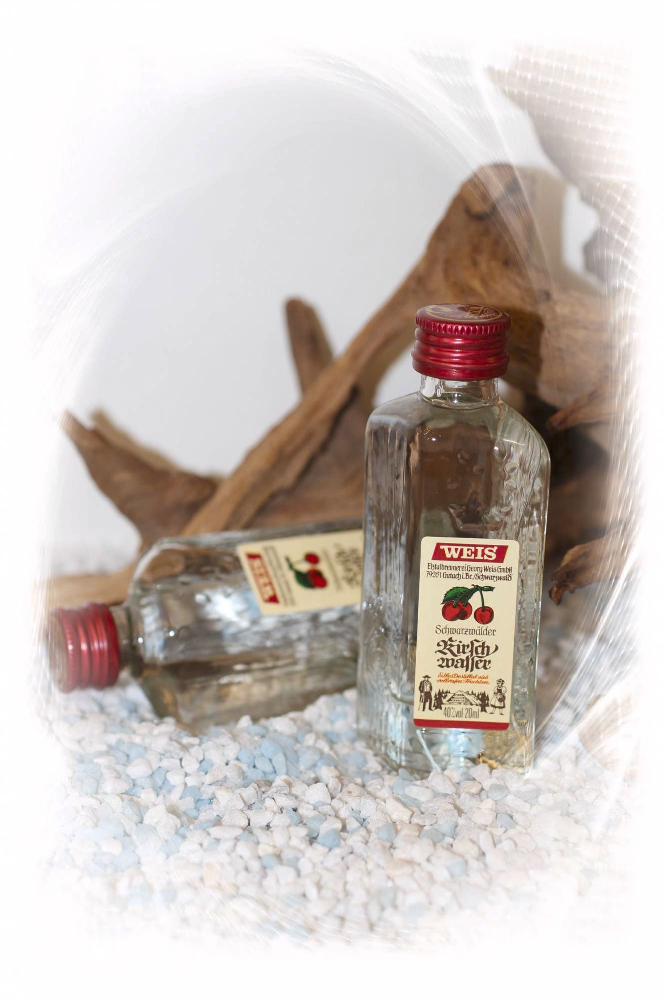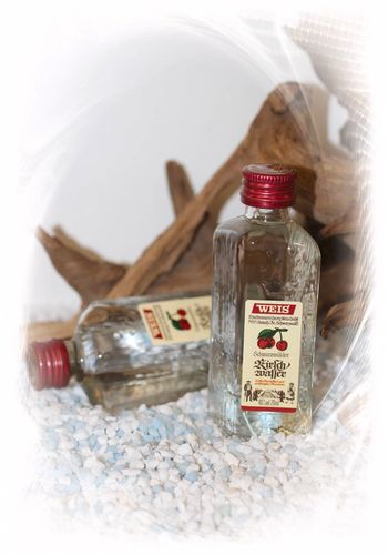 Hier zeigen wir Ihnen eine Miniaturflasche aus der Schwarzwaldbrennerei Weiss mit echtem Schwarzwälder Wässerle.