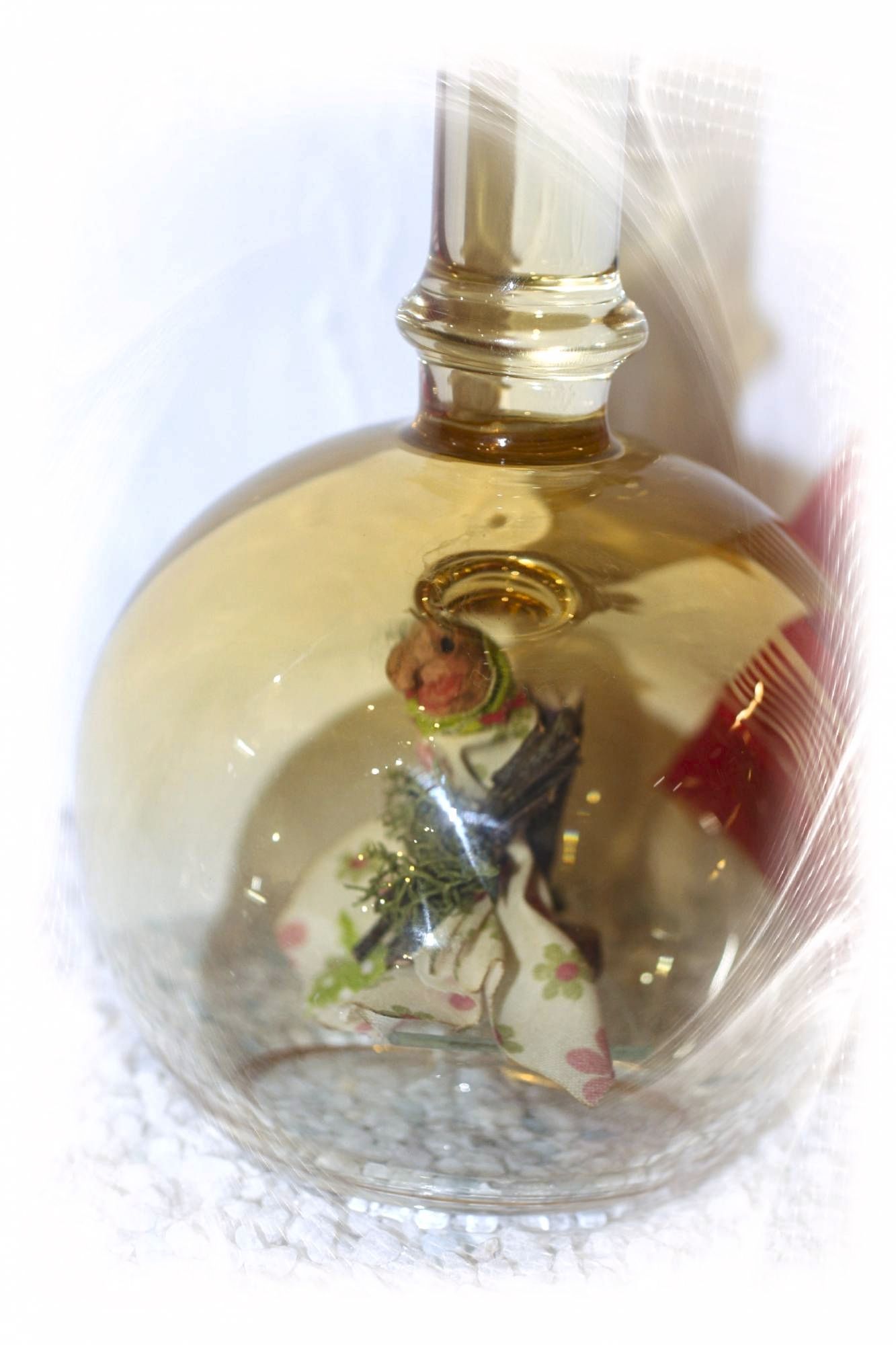 Hier zeigen wir Ihnen eine edle gefertigte, mundgeblasene Glasflasche mit einer toller handgefertigter Miniaturhexe.