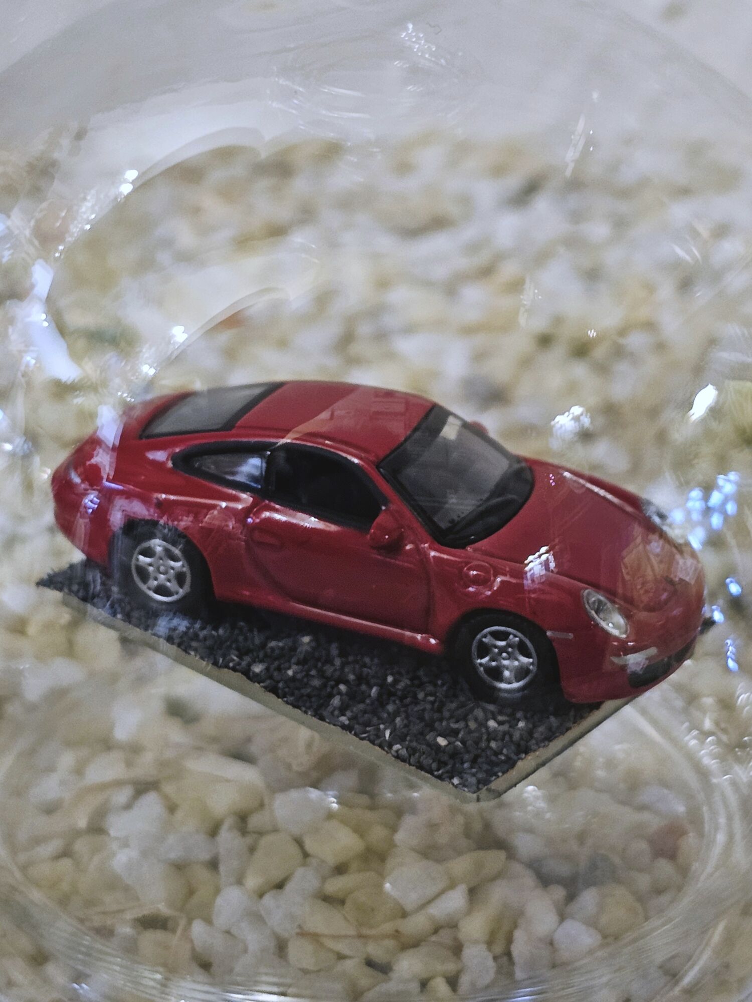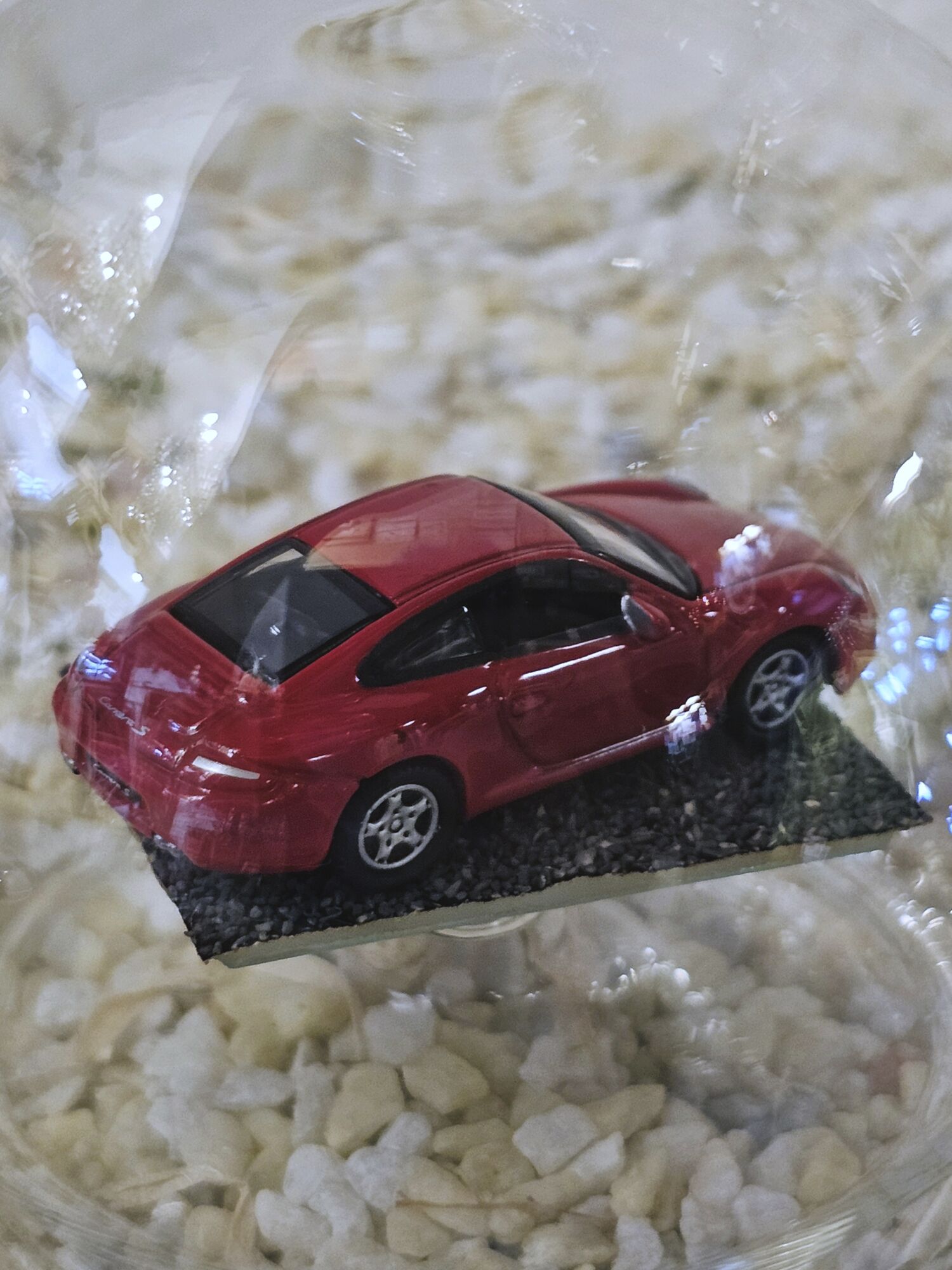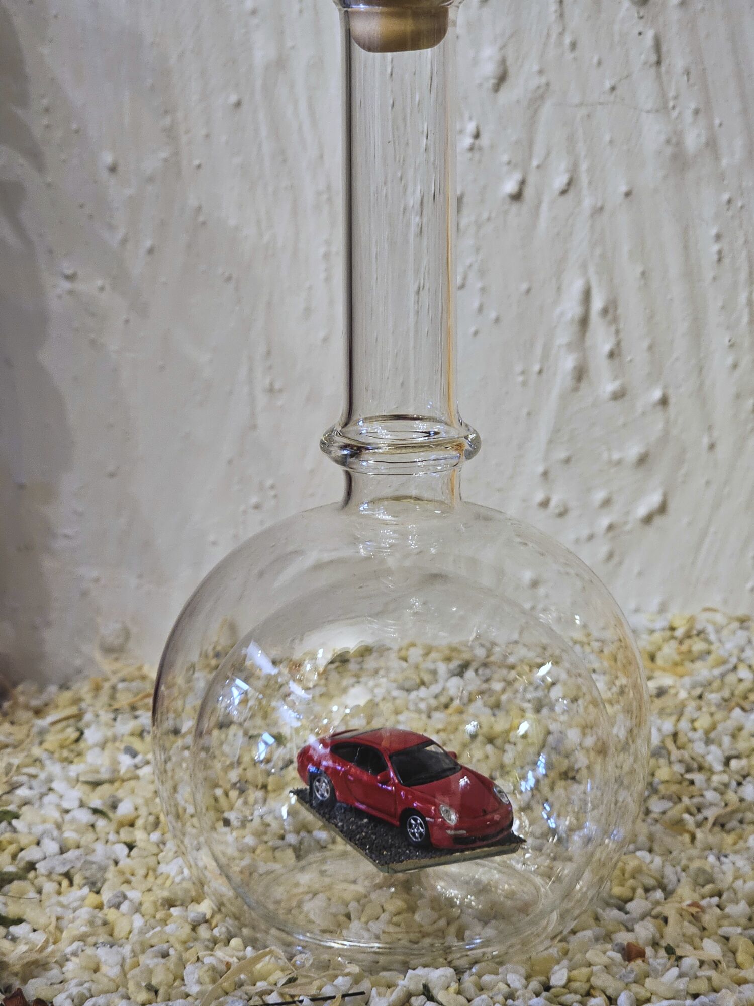 Hier zeigen wir Ihnen eine edle gefertigte, mundgeblasene Glasflasche mit einem Fahrzeug-Modell der Firma Herpa 1:87 Porsche 911 Carrera