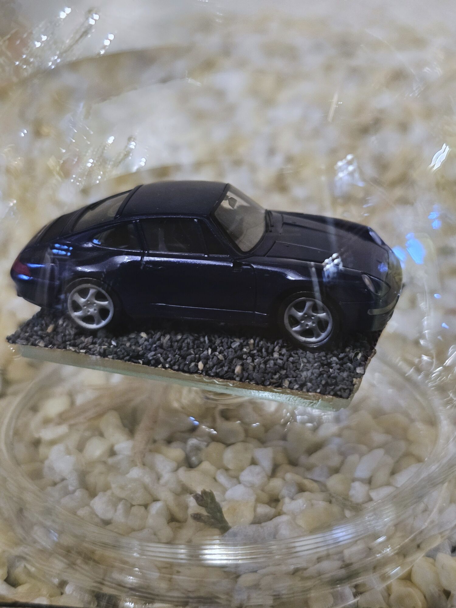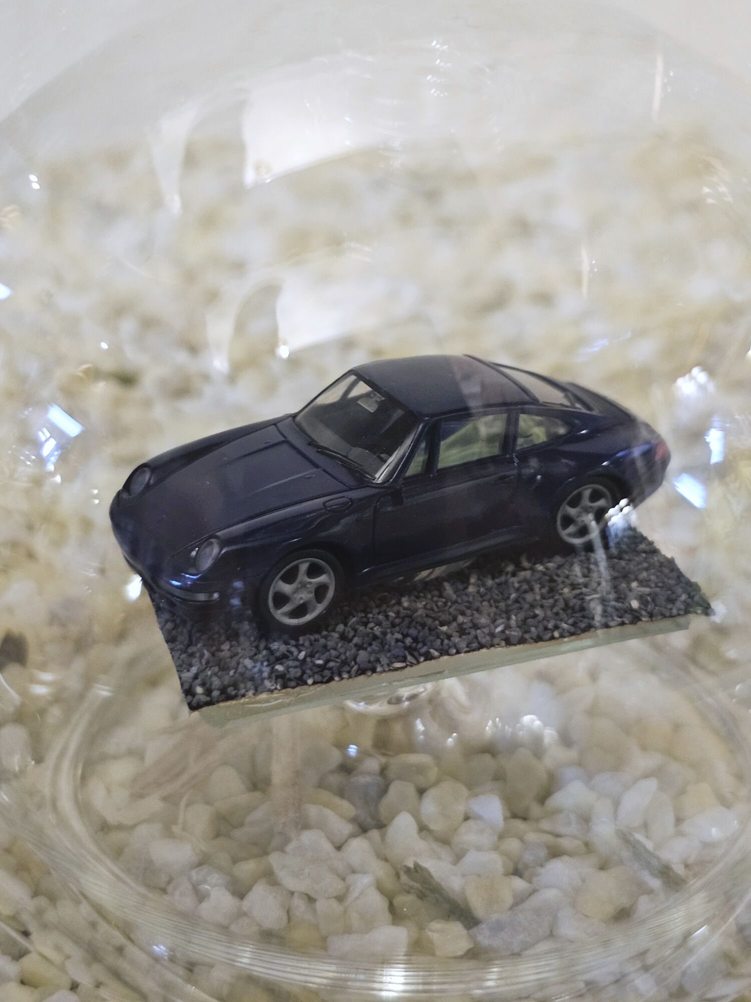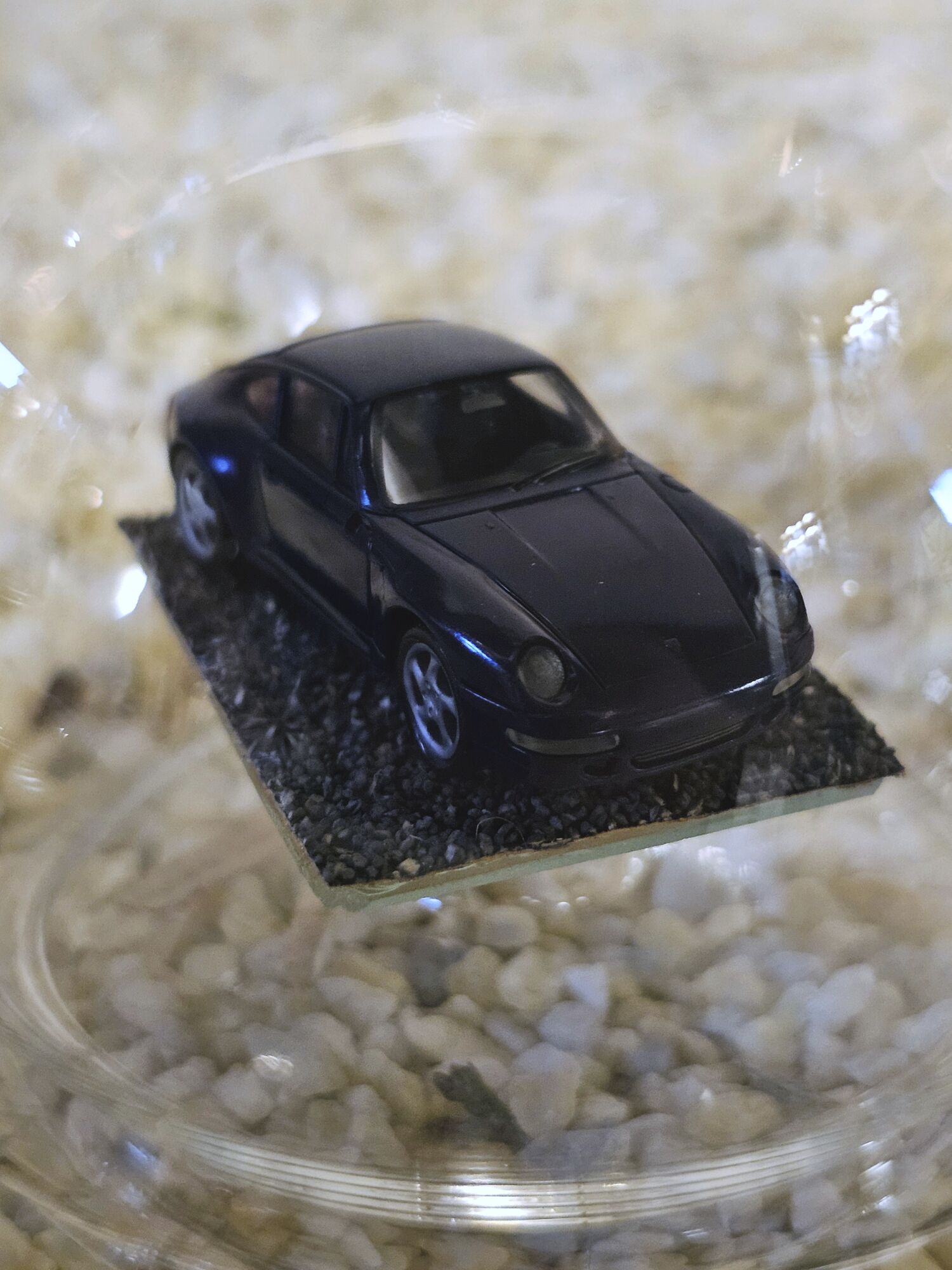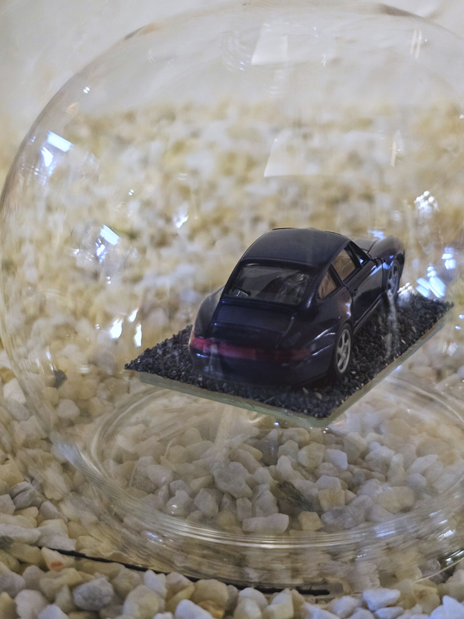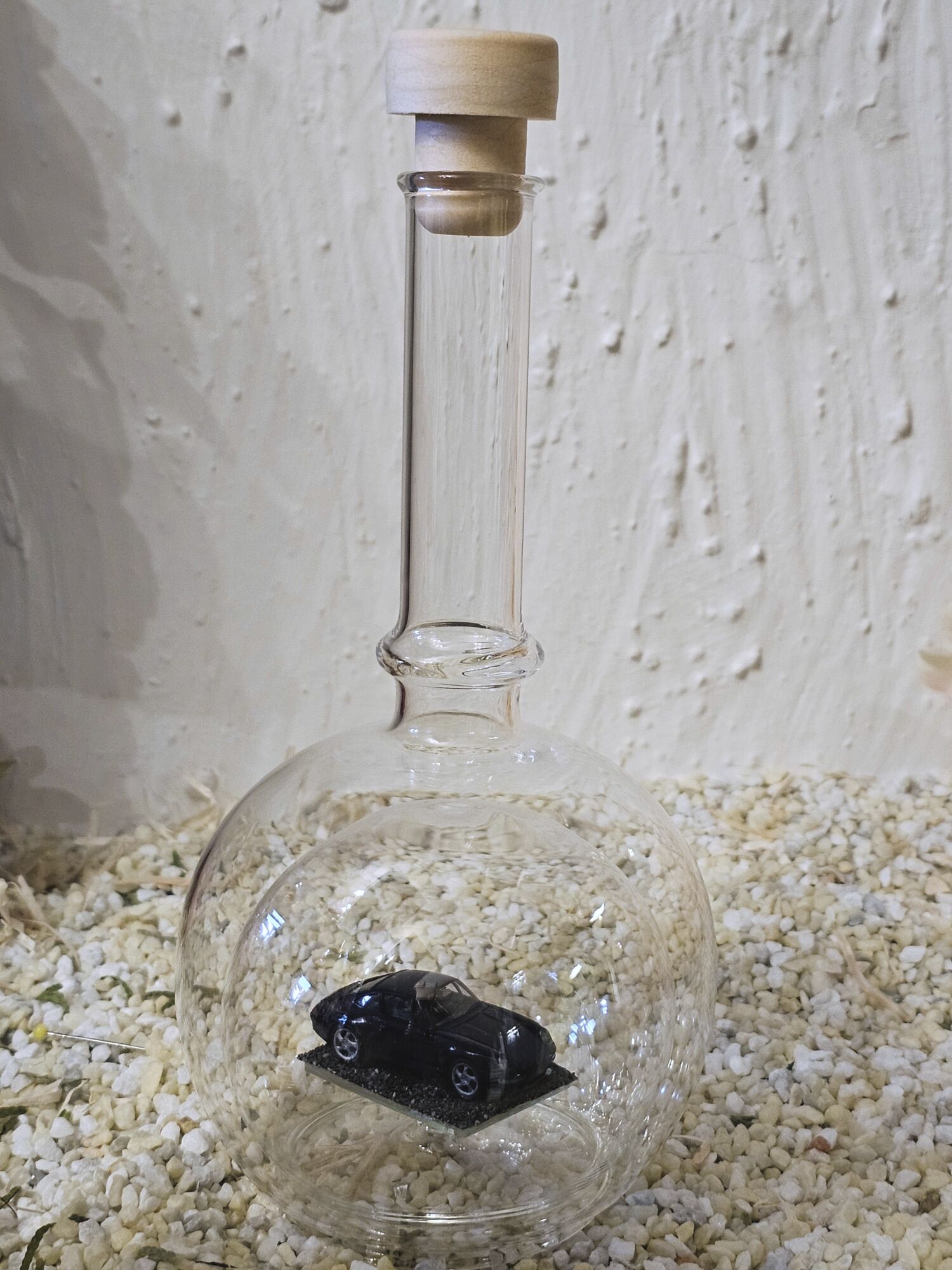 Hier zeigen wir Ihnen eine edle gefertigte, mundgeblasene Glasflasche mit einem Fahrzeug-Modell der Firma Herpa 1:87 Porsche 911