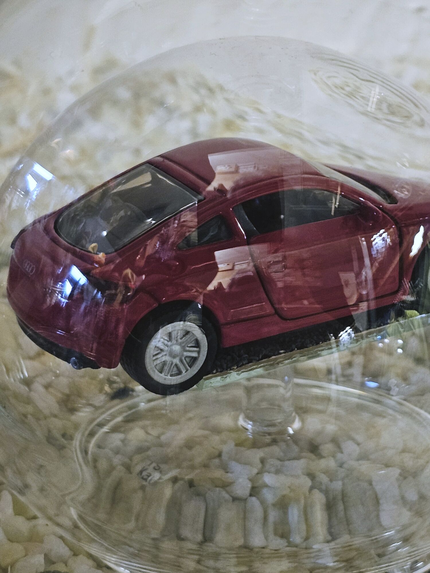 Edelglasflasche mit Siku Fahrzeug Audi TT