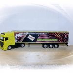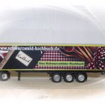 Der Auflieger ist von beiden Seiten, sowie auf dem Dach und hinten beklebt.
