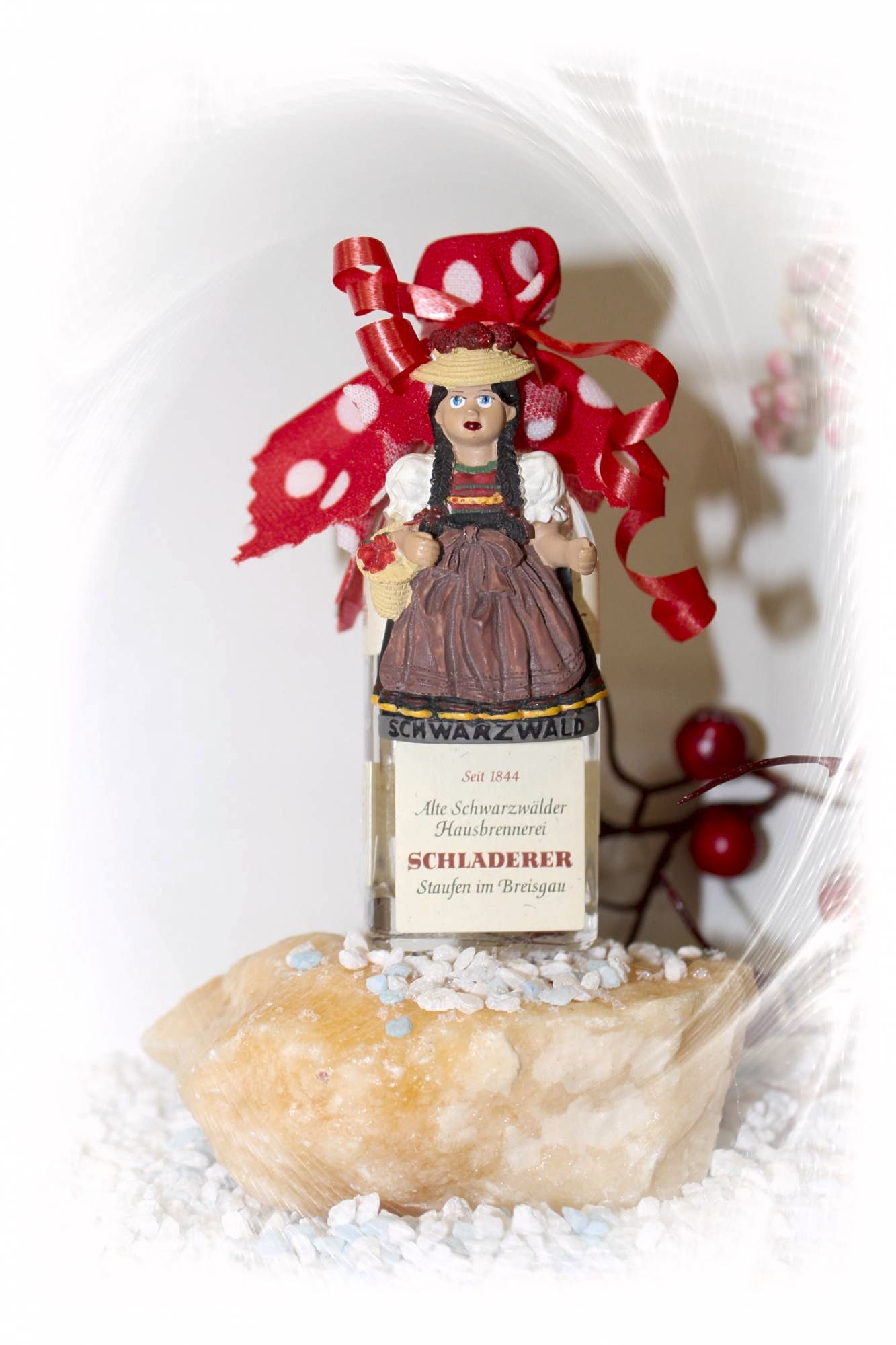 Hier bieten wir Ihnen eine schöne Miniaturflasche aus der Schwarzwaldbrennerei Schladerer mit einem Miniatur Schwarzwaldmädel an.