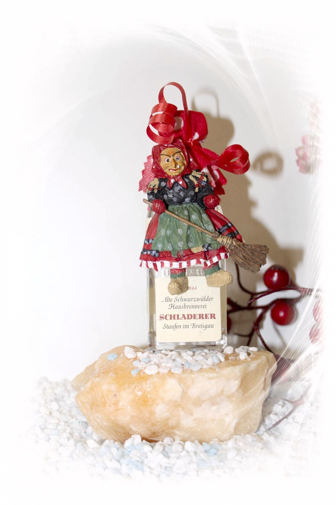 Hier bieten wir Ihnen eine schöne Miniaturflasche aus der Schwarzwaldbrennerei Schladerer mit einer Miniatur Schwarzwald-Hexe an.