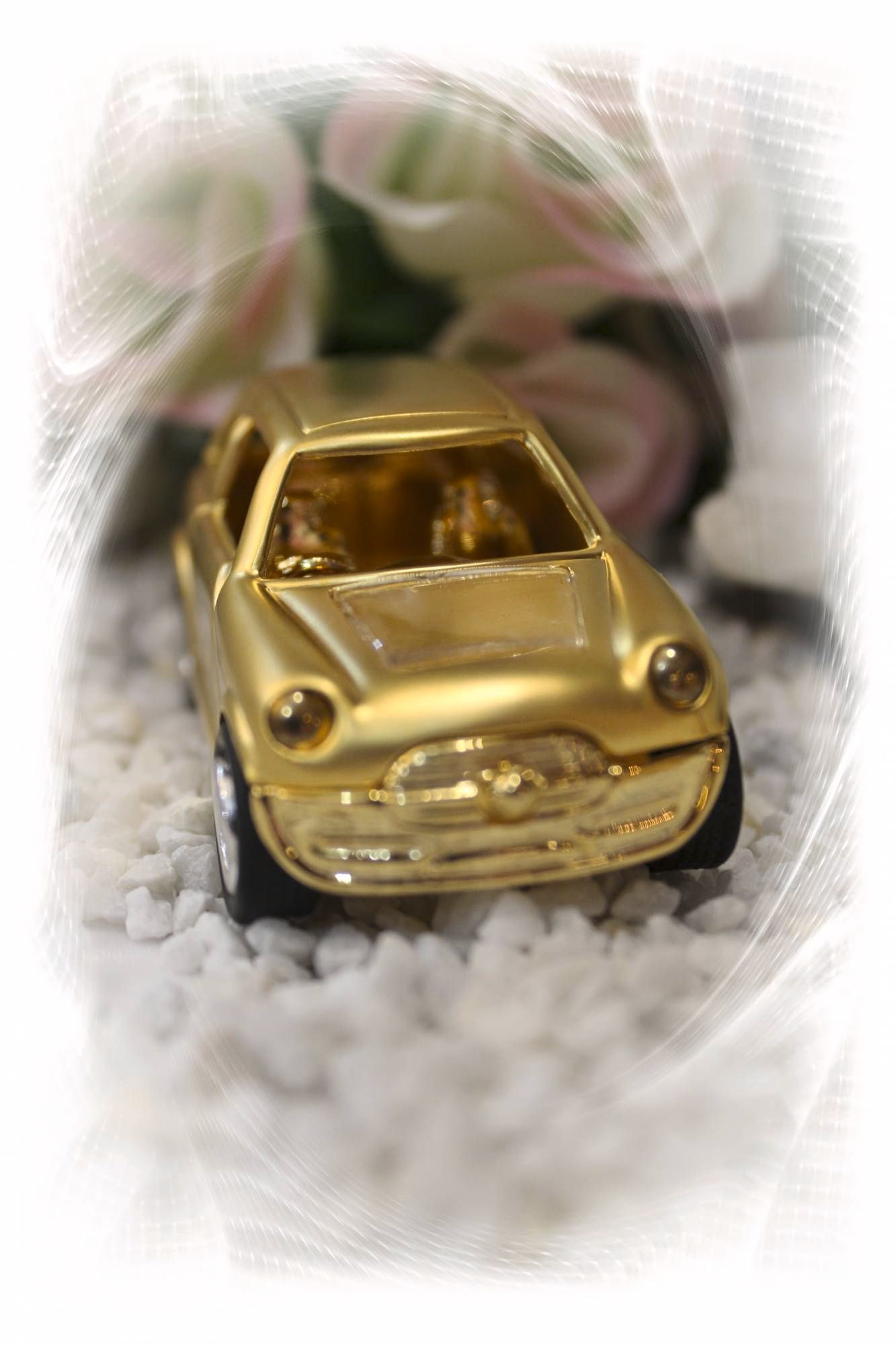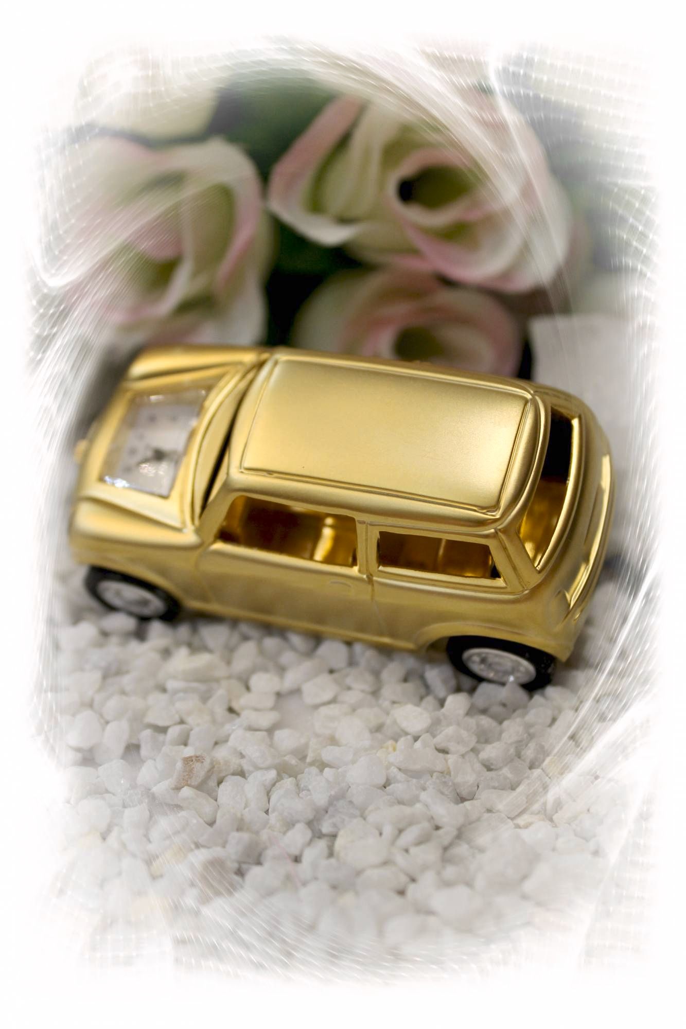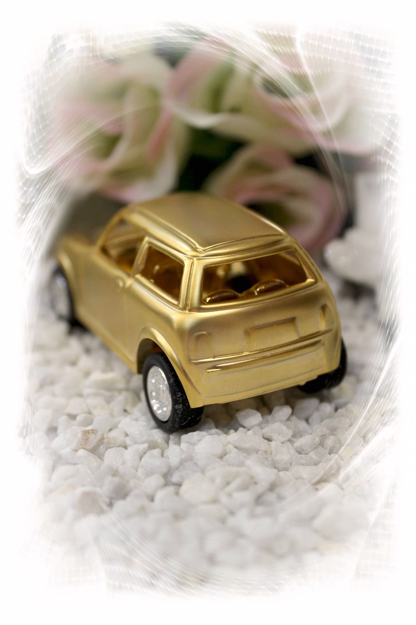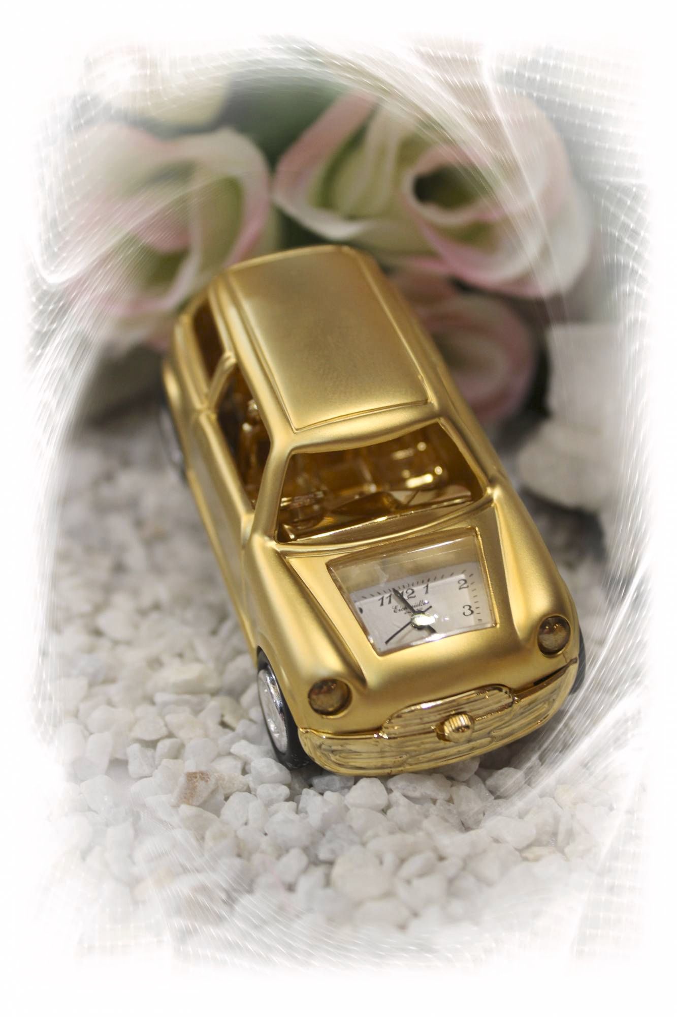 Wunderschön gearbeitete Miniaturuhr in Form eines Kleinwagen "Mini"