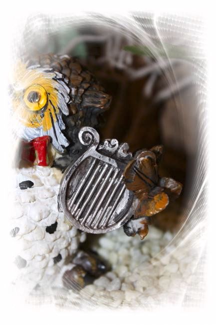Schwarzwald Eule "Rudi" 8cm mit Harfe