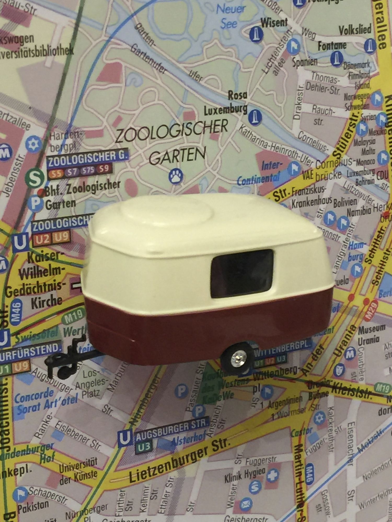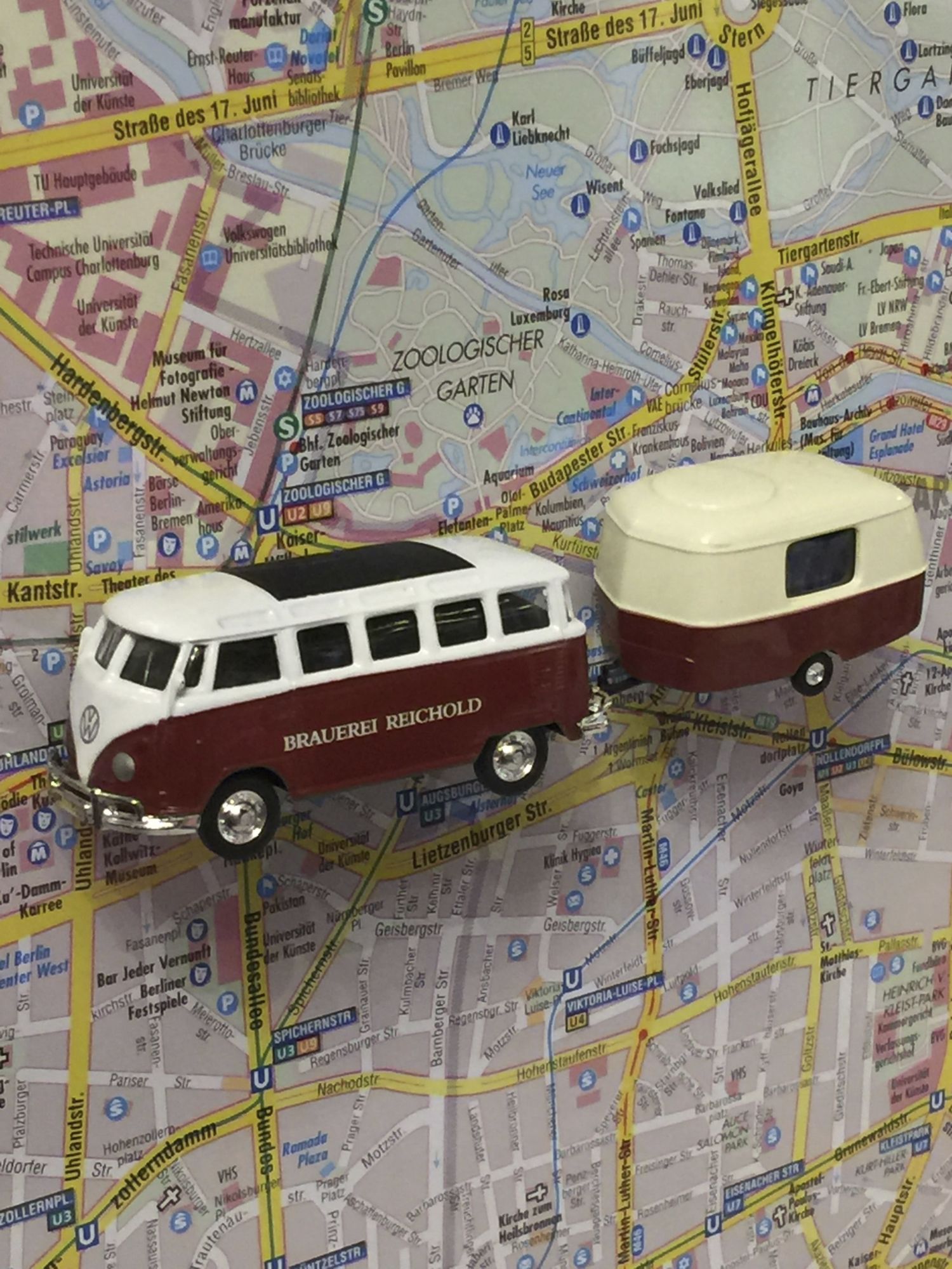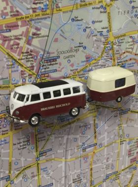 Magnet "Oldtimer" VW Bus Samba mit Wohnwagen