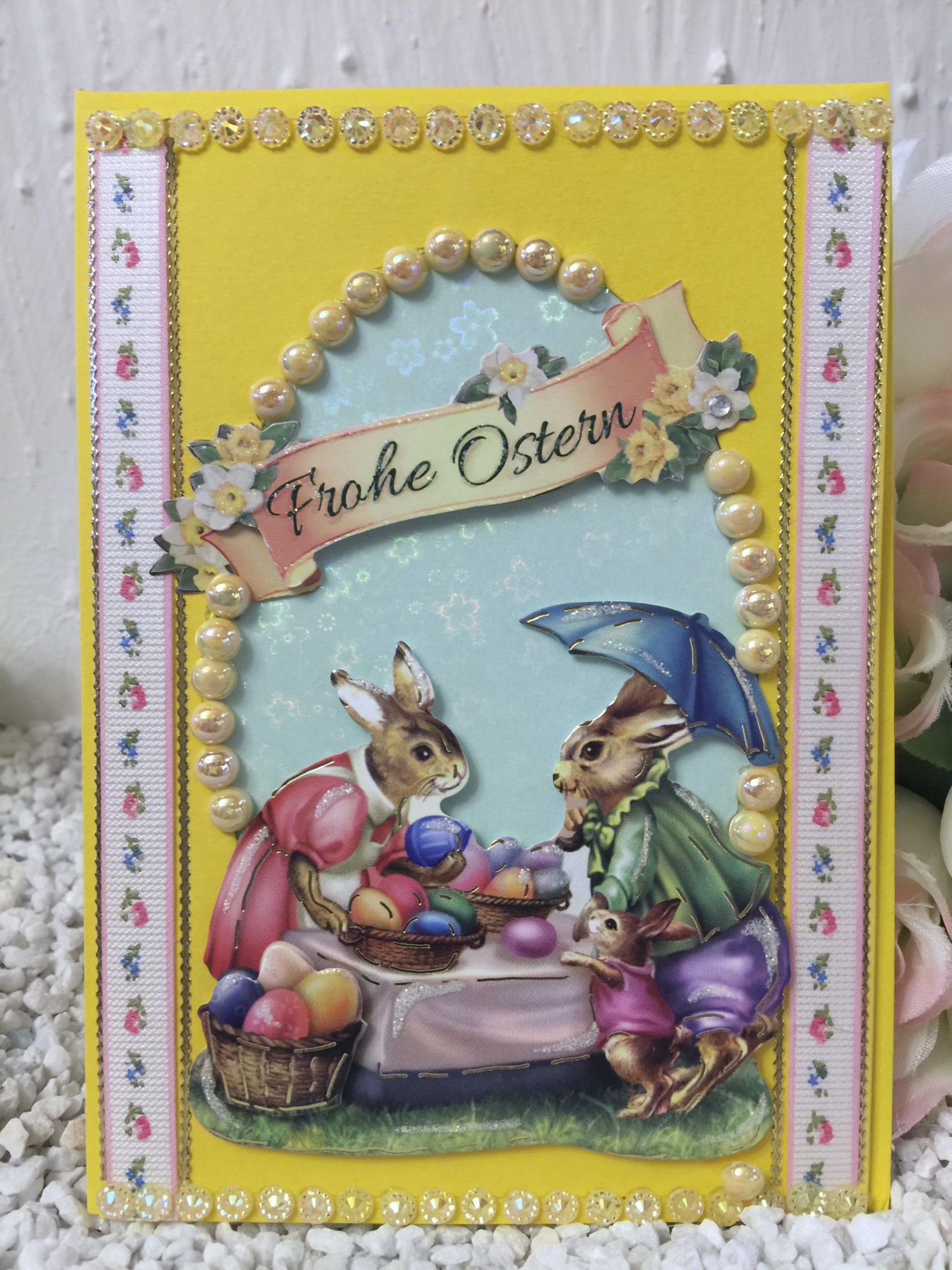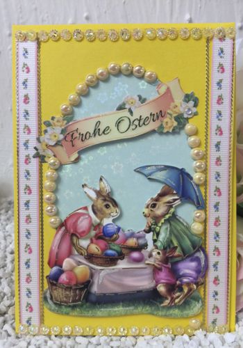 Material: Karton, Papier, Perlen, Schmucksteinchen