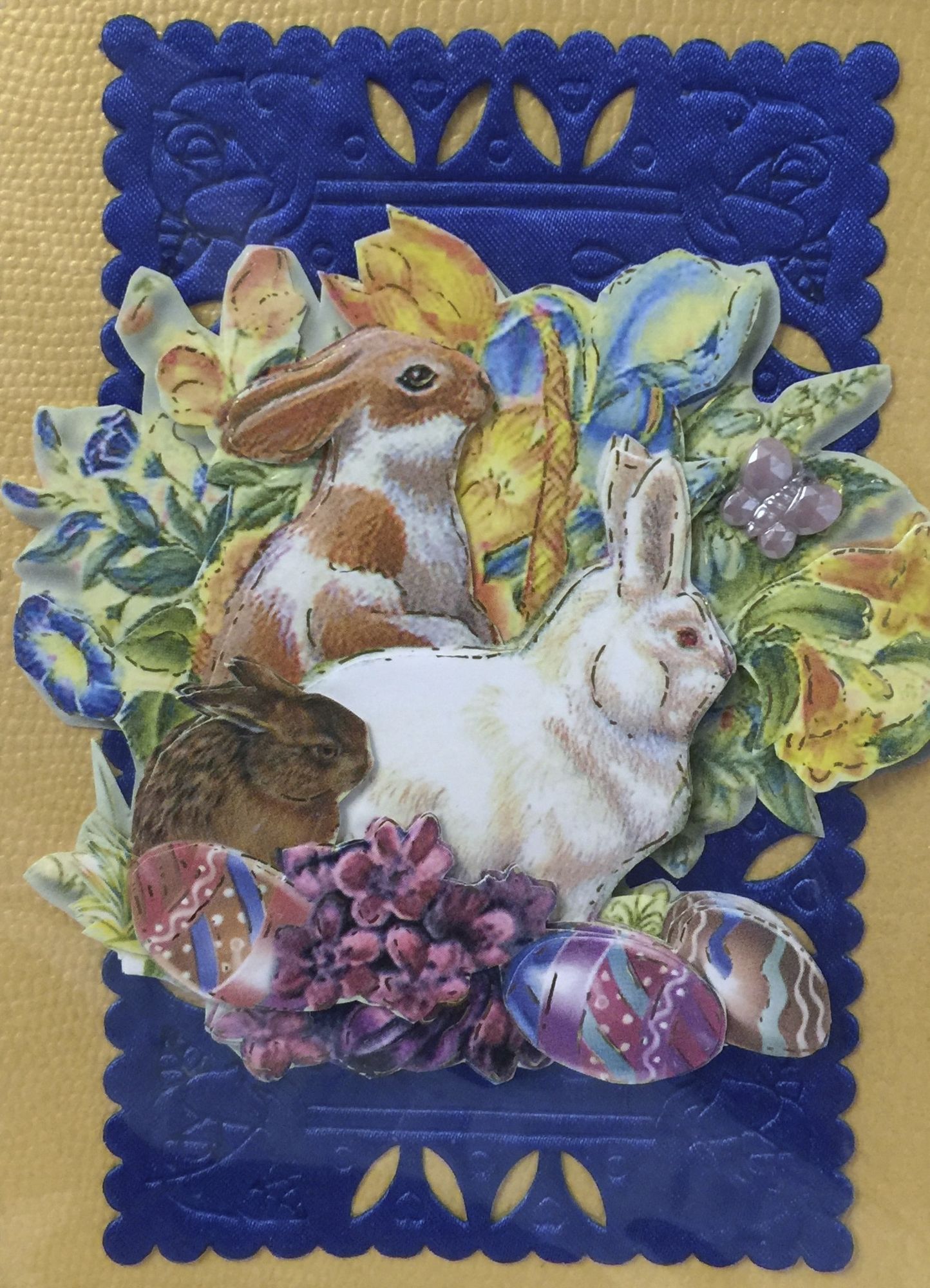 Material: Karton, Papier, Perlen, Schmucksteinchen