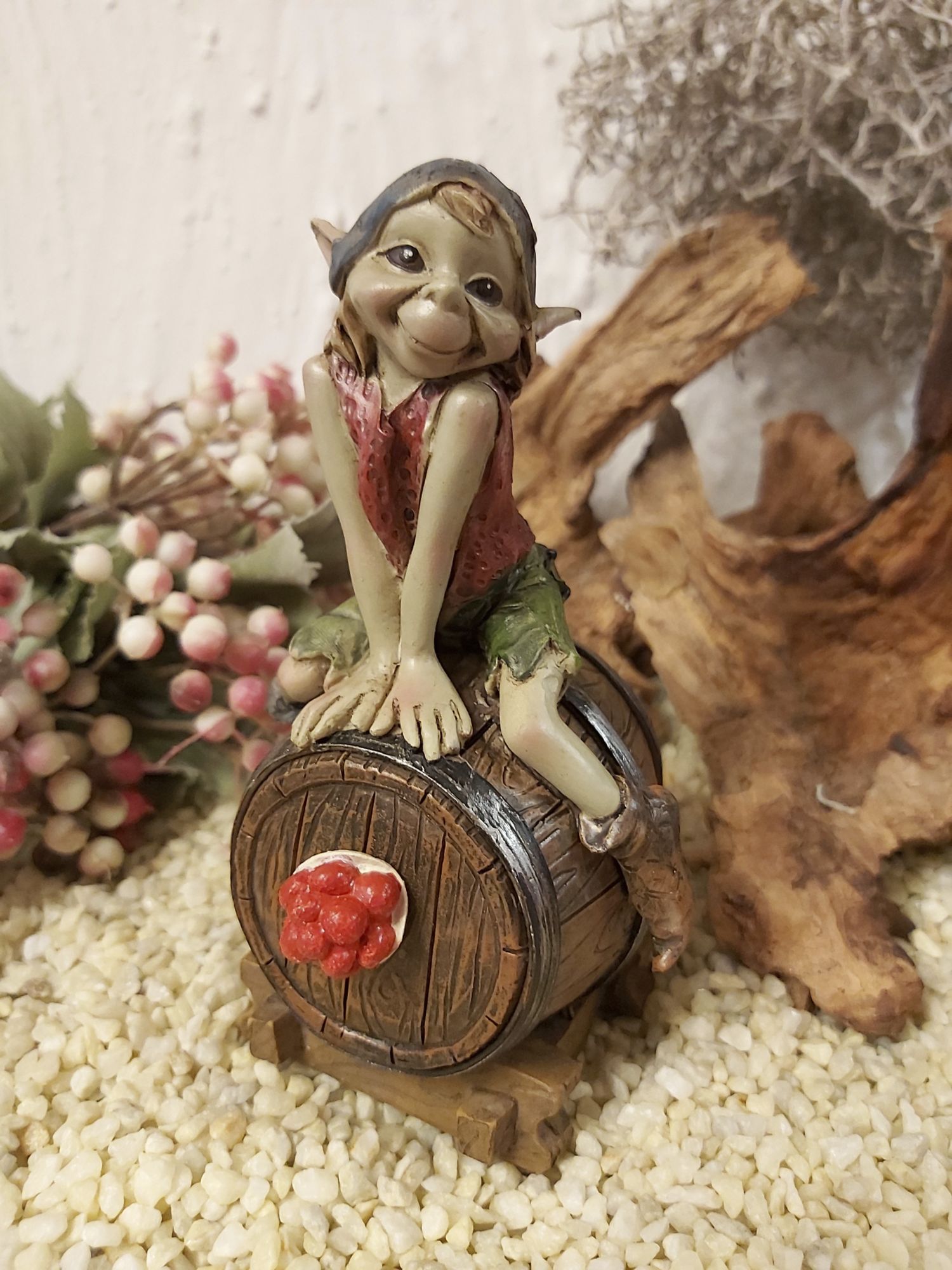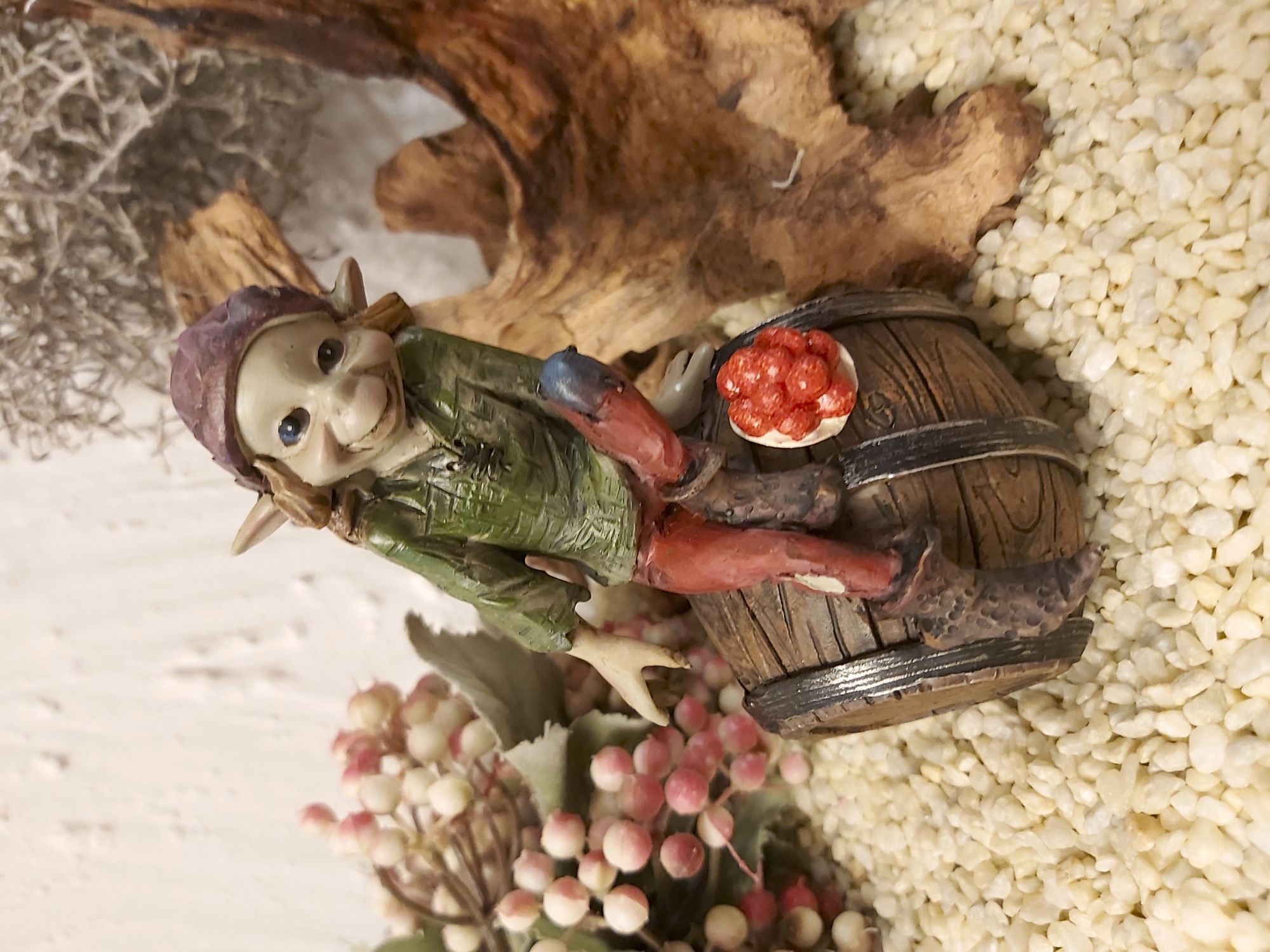 Hier ein niedlicher kleiner Wichtel auf Fass mit Bollenhut aus unserem Hause.