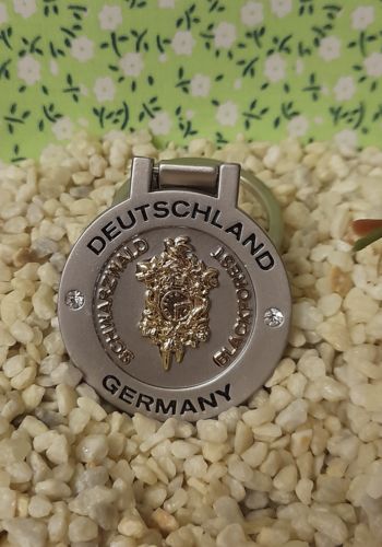 Der Schlüsselanhänger ist aus Metall und die goldfarbene geprägte Schwarzwälder Kuckucksuhr ist eine absolute Augenweide.