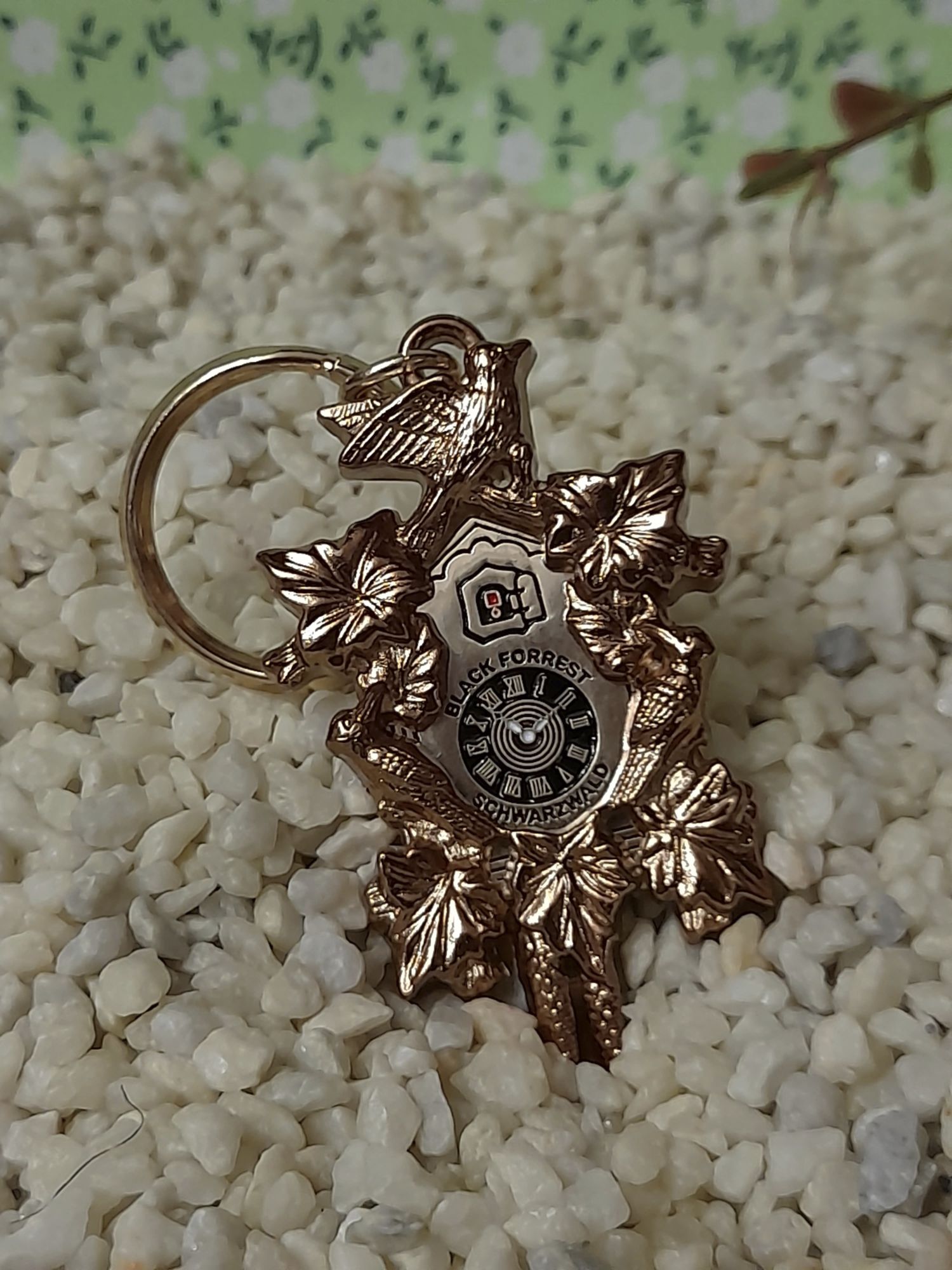 Schlüsselanhänger Schwarzwälder Kuckucksuhr altgoldfarbig