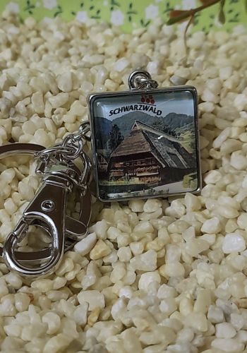 Der Schlüsselanhänger hat zwei Bilder Schwarzwaldhaus und das berühmte Schwarzwälder Eichhörnle