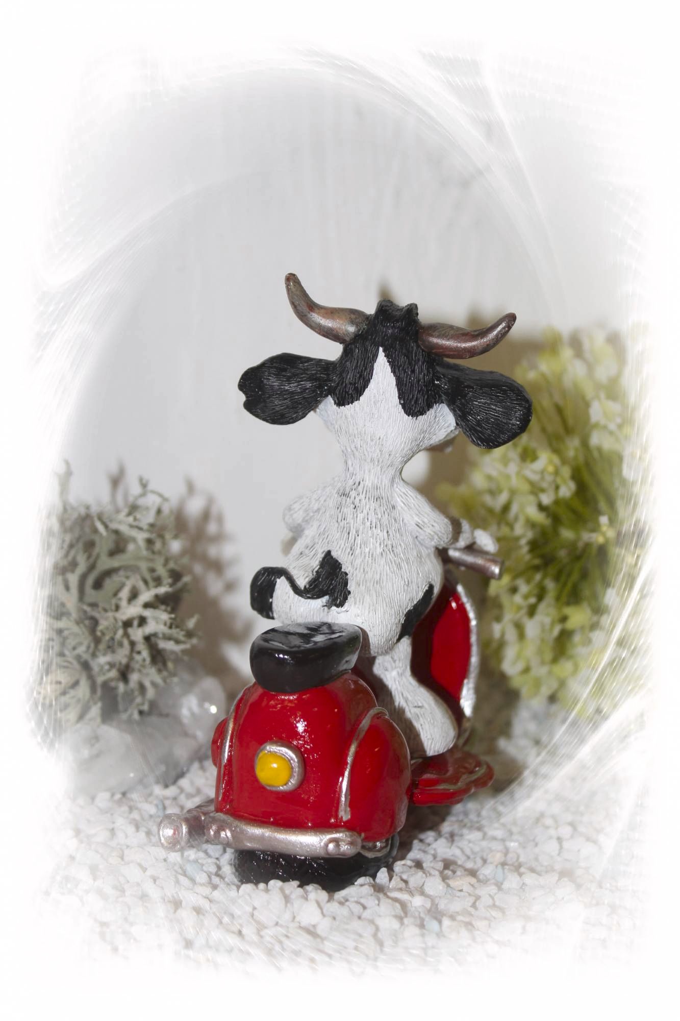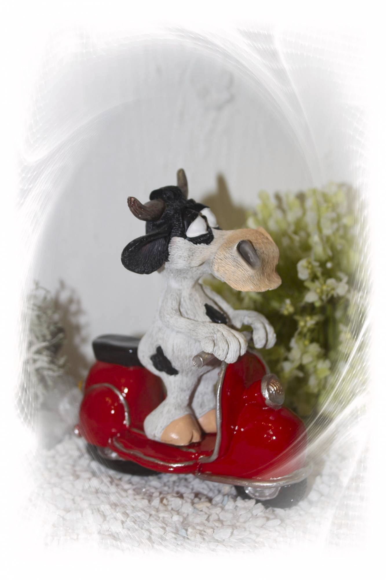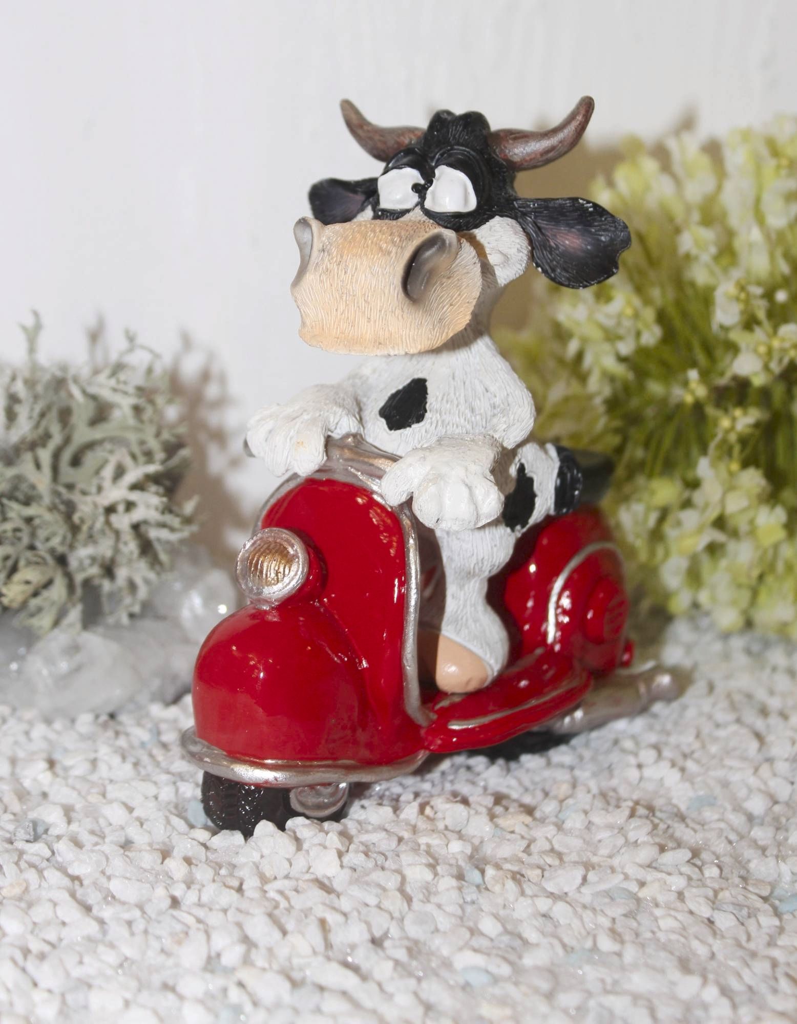 Die niedliche Kuh auf einem tollen Motoroller. Für alle Motoradfahrer.