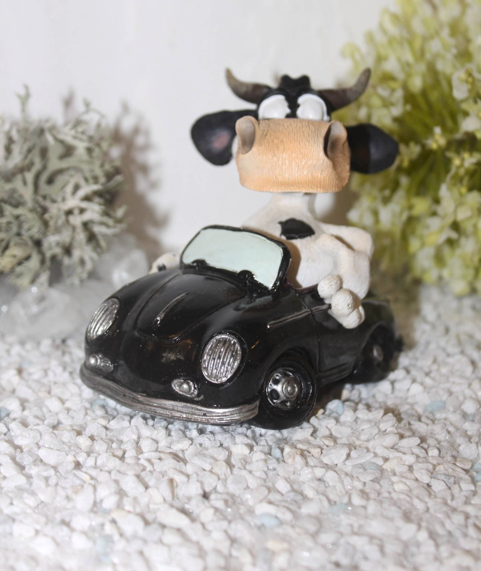 Die niedliche Kuh auf einem tollen Sportwagen. Für alle Autofahrer.