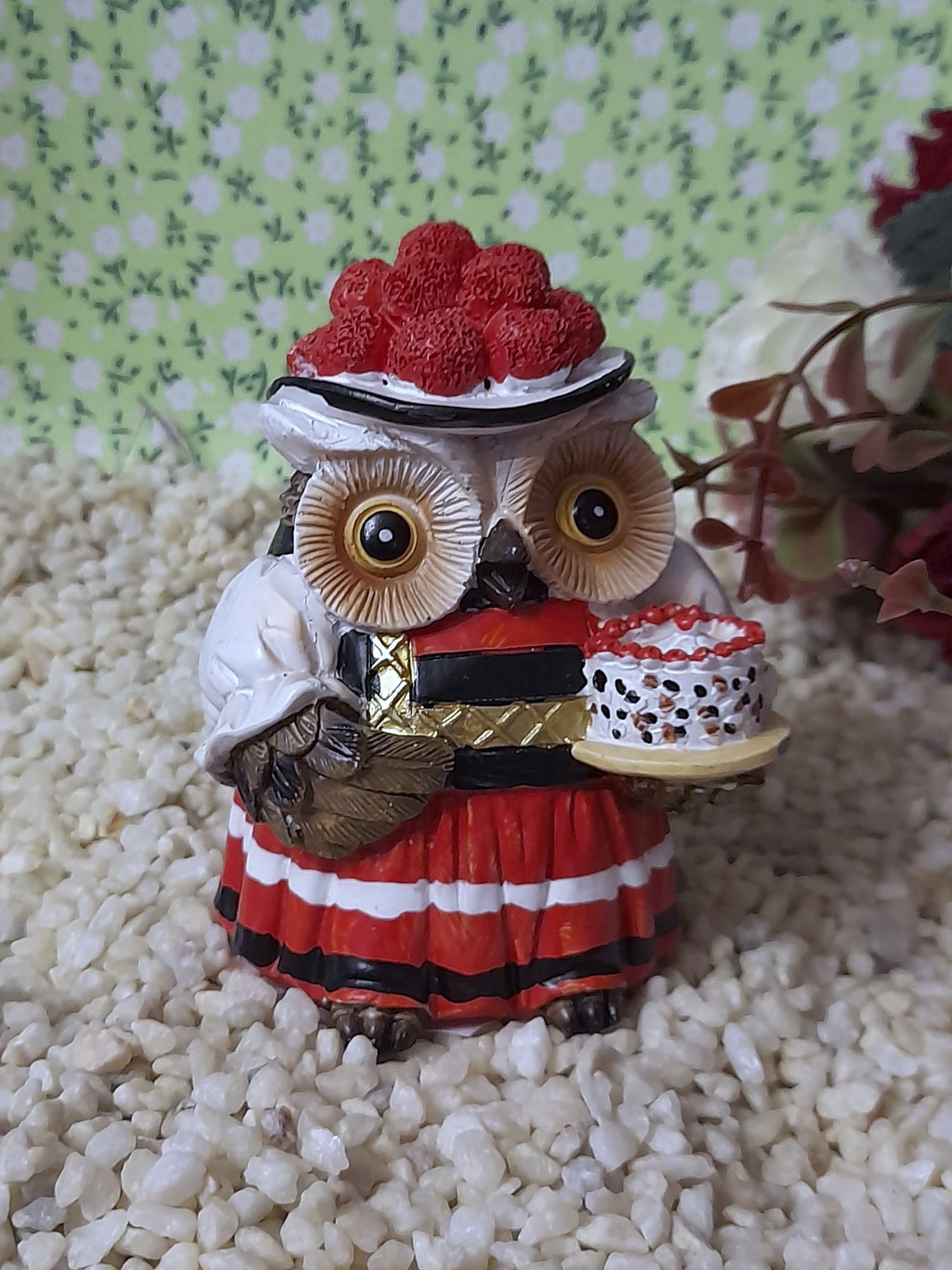 Eine niedliche Eule im Schwarzwald-Look, mit dem Schwarzwälder Bollenhut und der berühmtem Schwarzwälder Kirschtorte