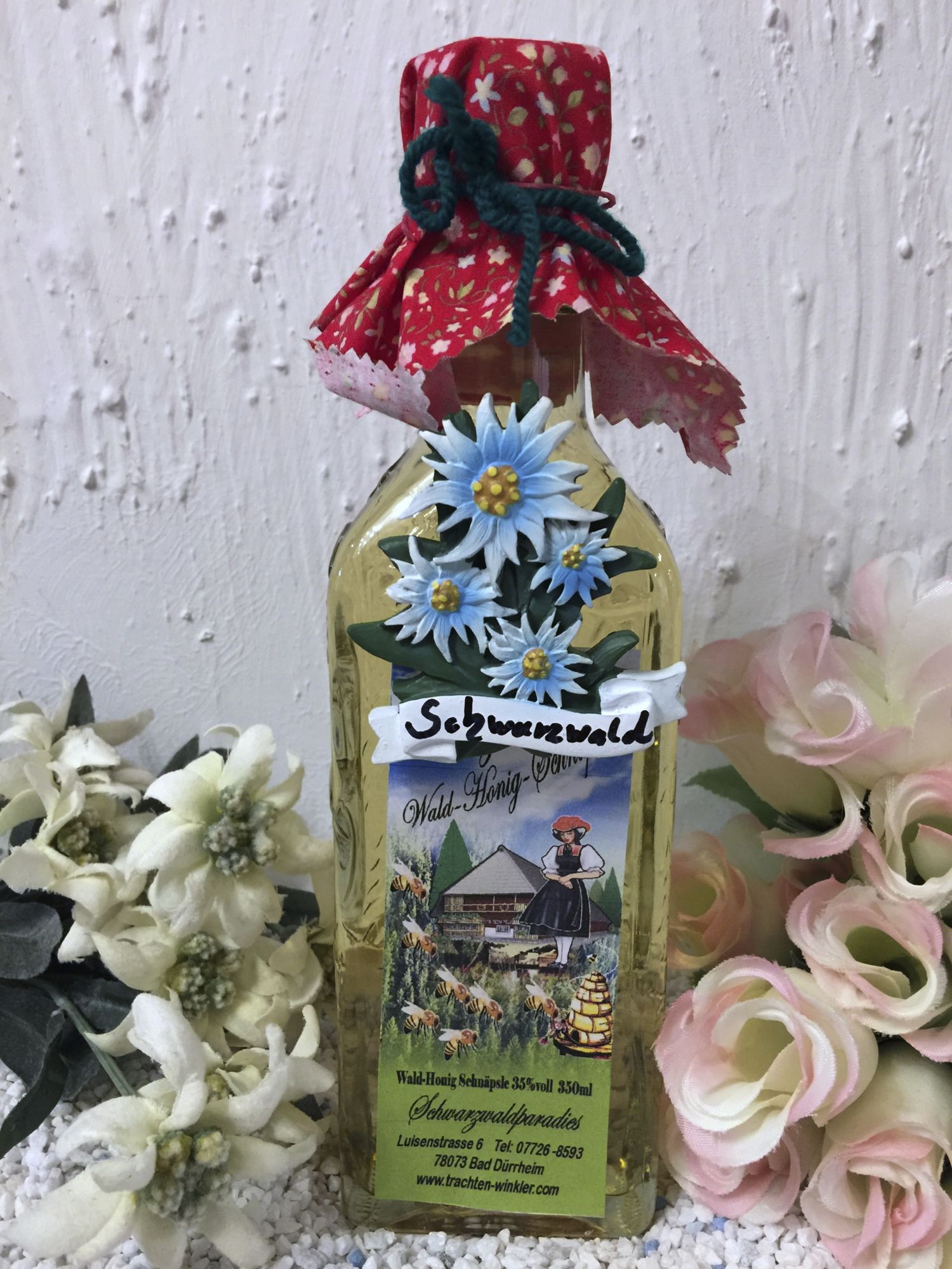 Schnäpsle 350ml mit Edelweiss Schleife Schwarzwald