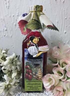 Abgefüllt in der schönen traditionellen Schwarzwaldflasche mit Schwarzwaldmotiven.
