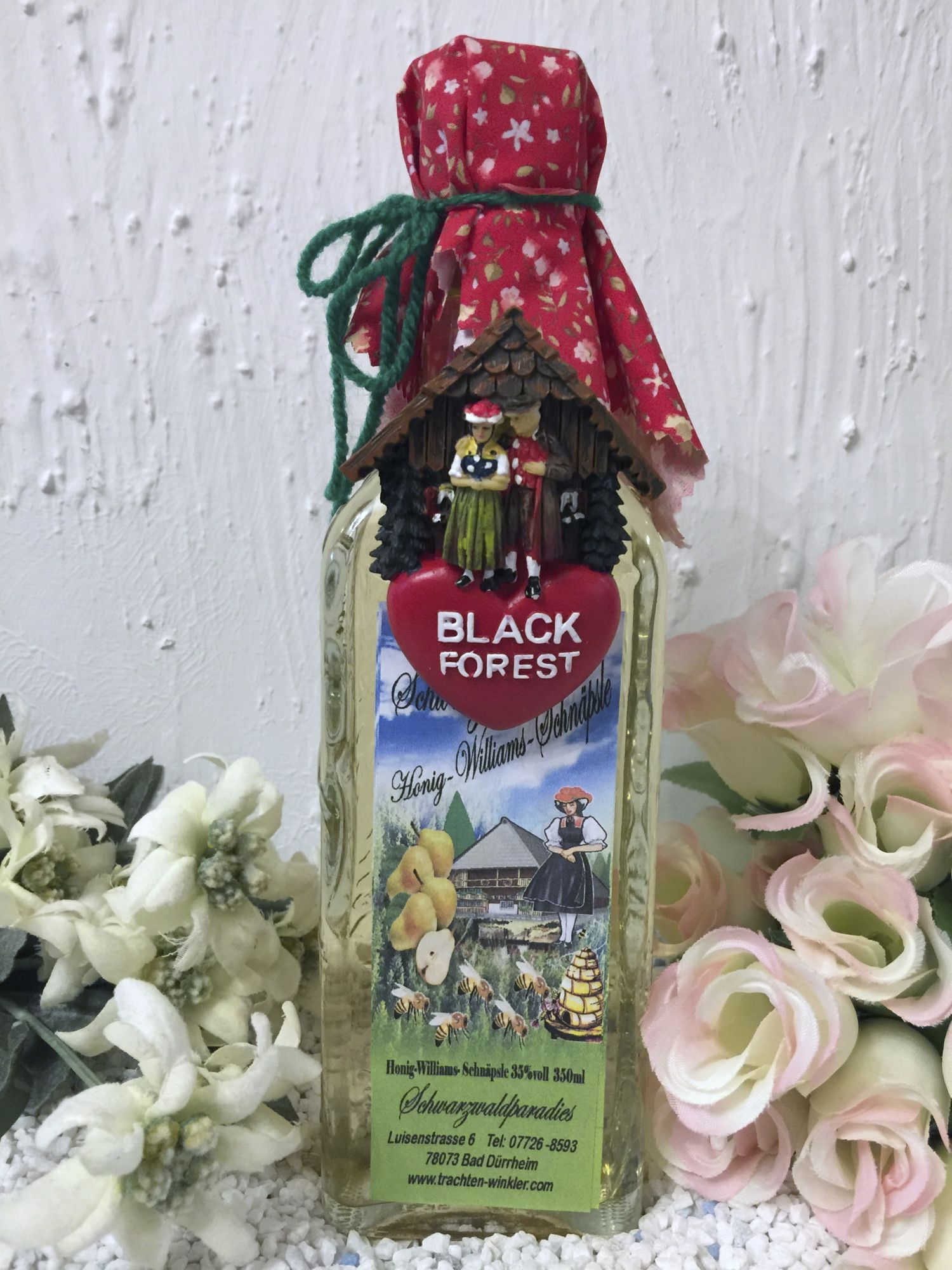 Dies Spezialität wird für uns abgefüllt in die  schönen Schwarzwaldflaschen  mit Schwarzwaldmotiven.