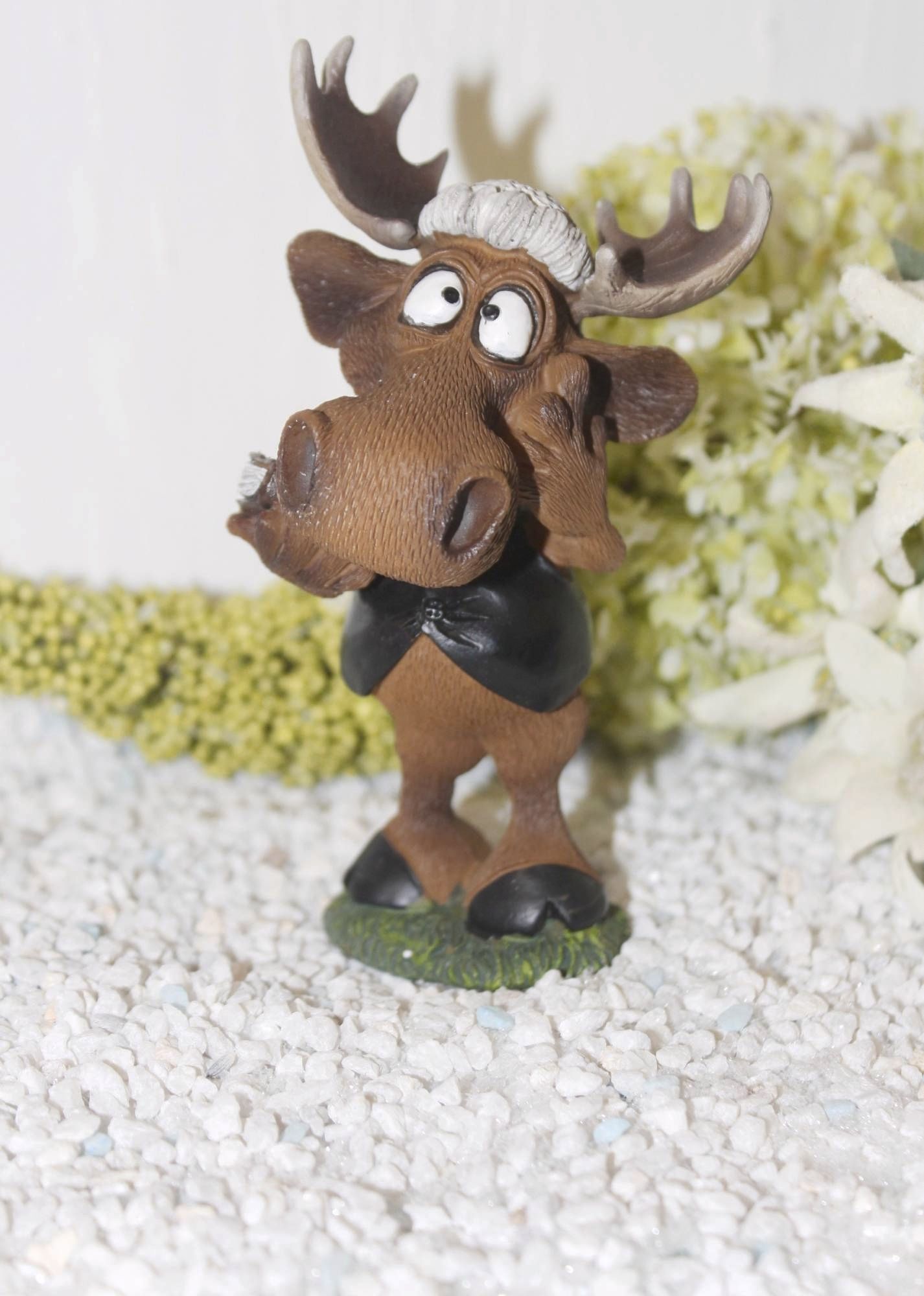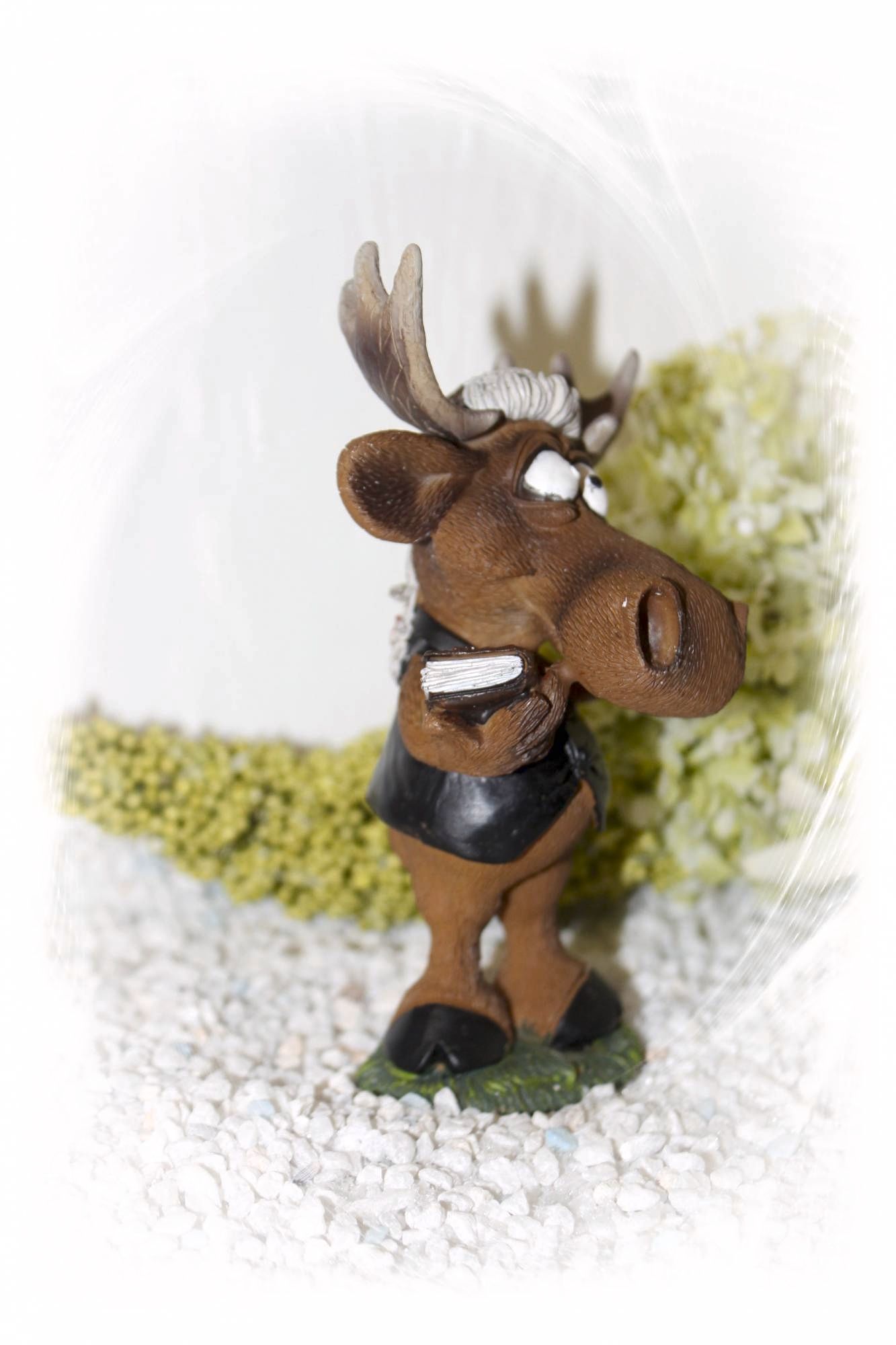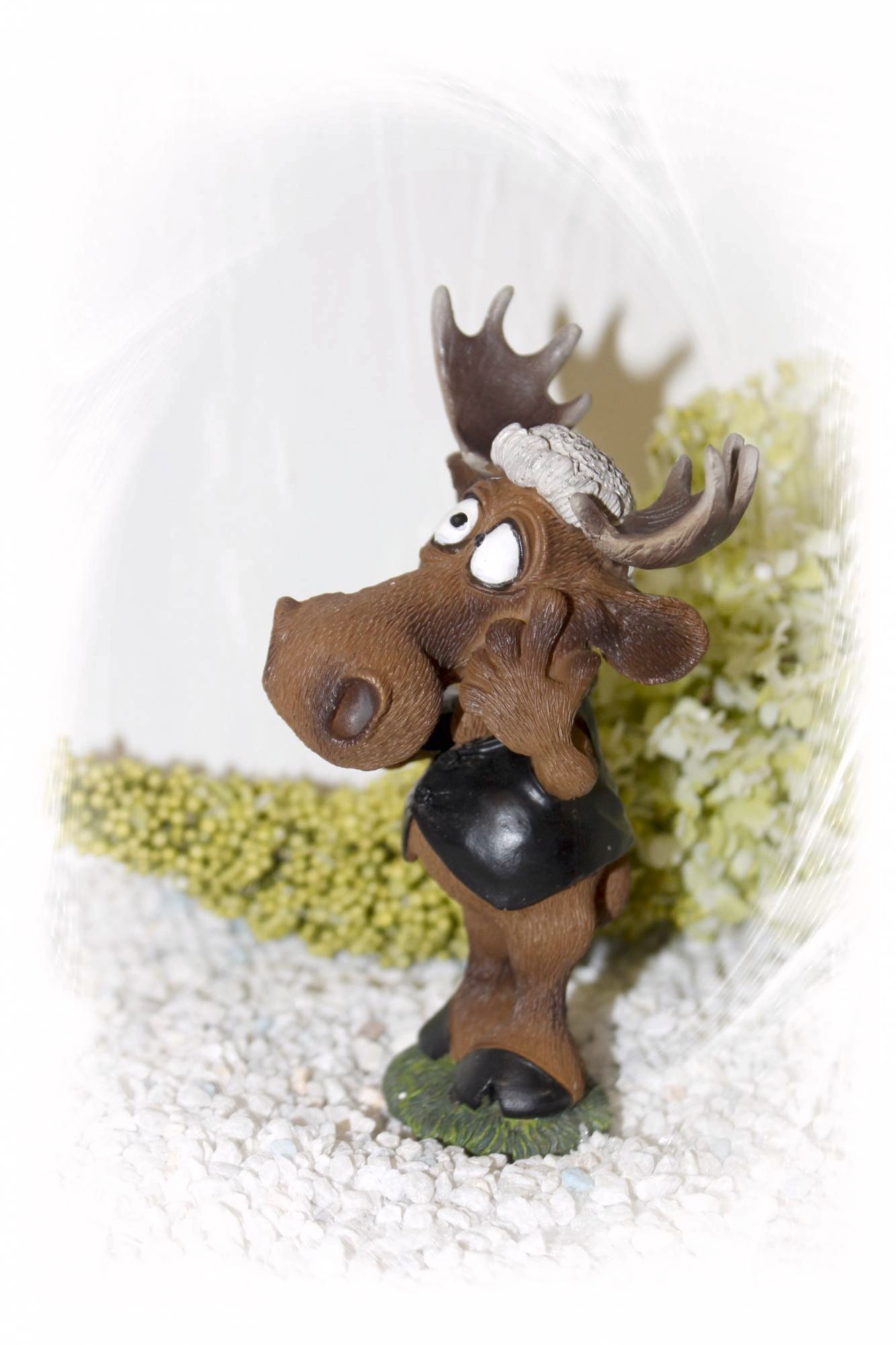 Die Elchfiguren sind aus Kunstharz und liebevoll handbemahlt.