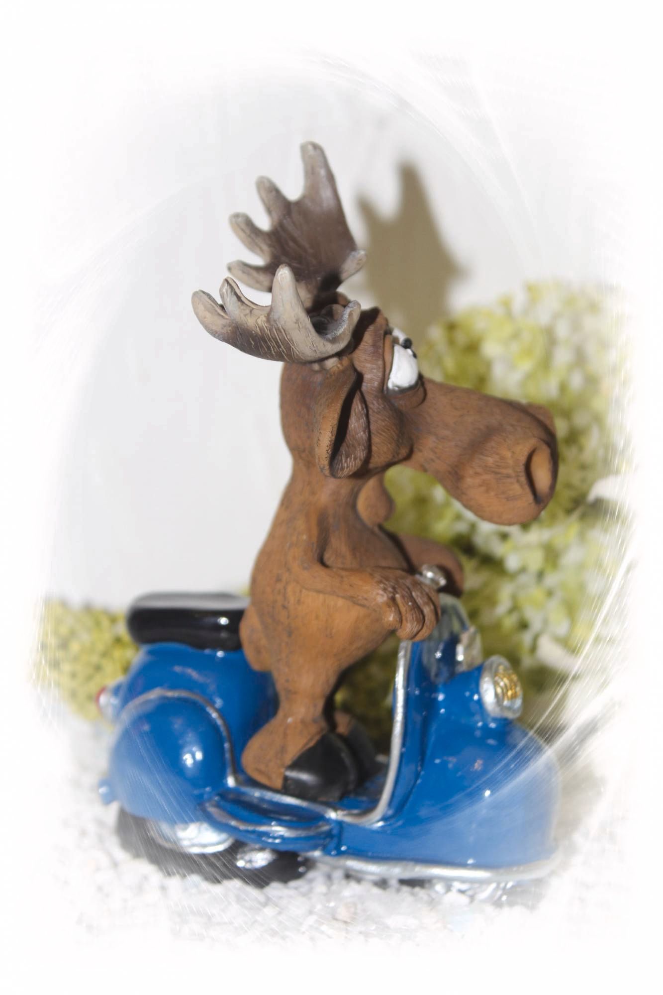 Die Elchfiguren sind aus Kunstharz und liebevoll handbemahlt.