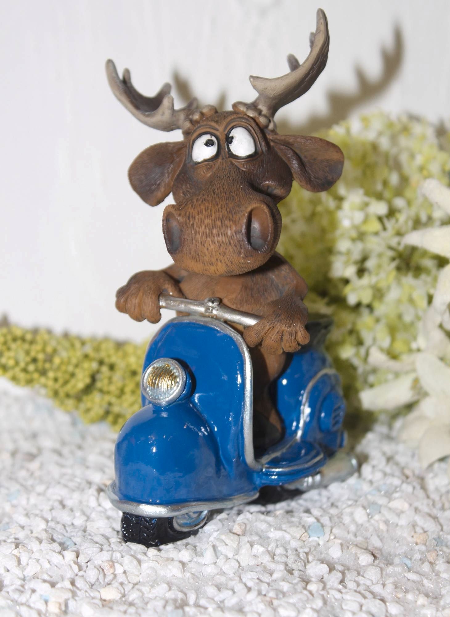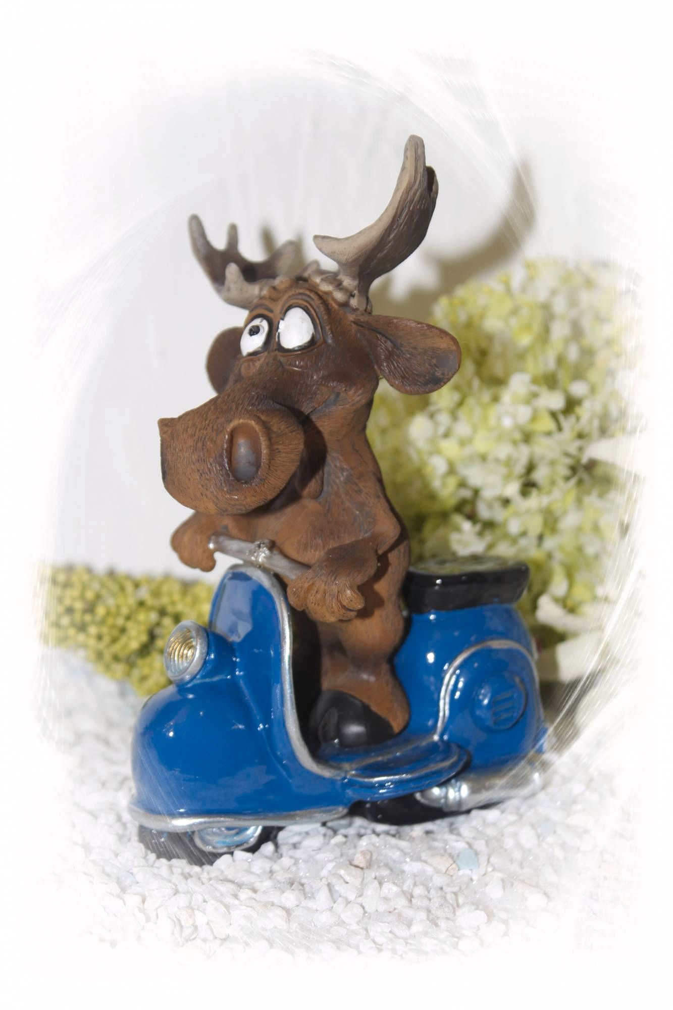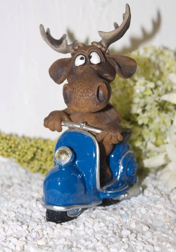Die Elchfiguren sind aus Kunstharz und liebevoll handbemahlt.