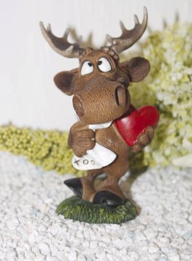 Die Elchfiguren sind aus Kunstharz und liebevoll handbemahlt.