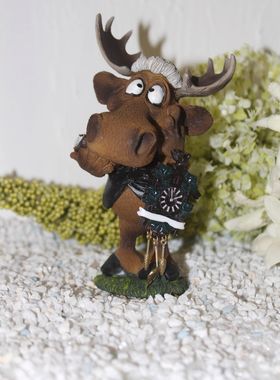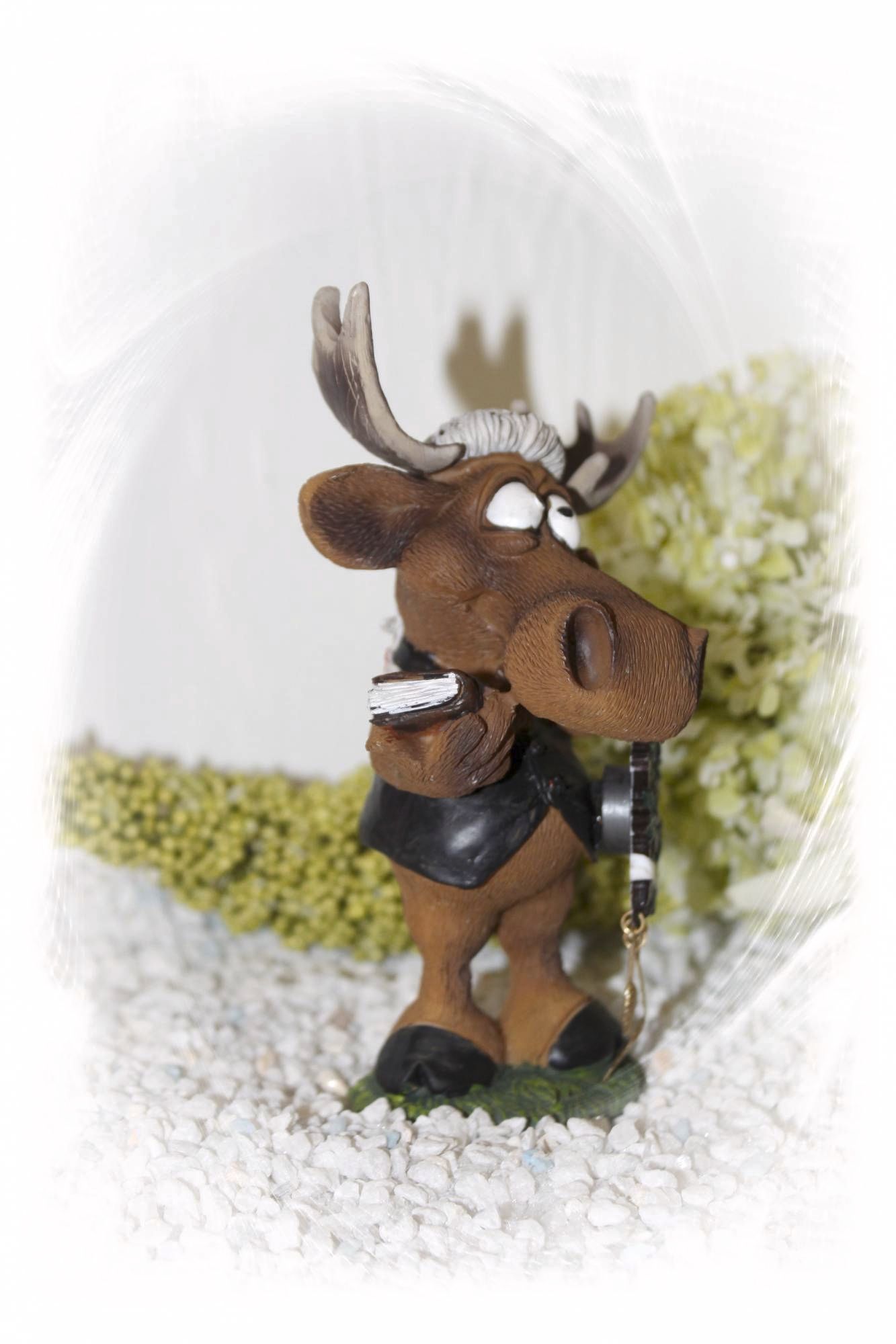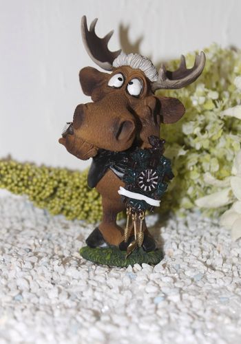 Die Elchfiguren sind aus Kunstharz und liebevoll handbemahlt.