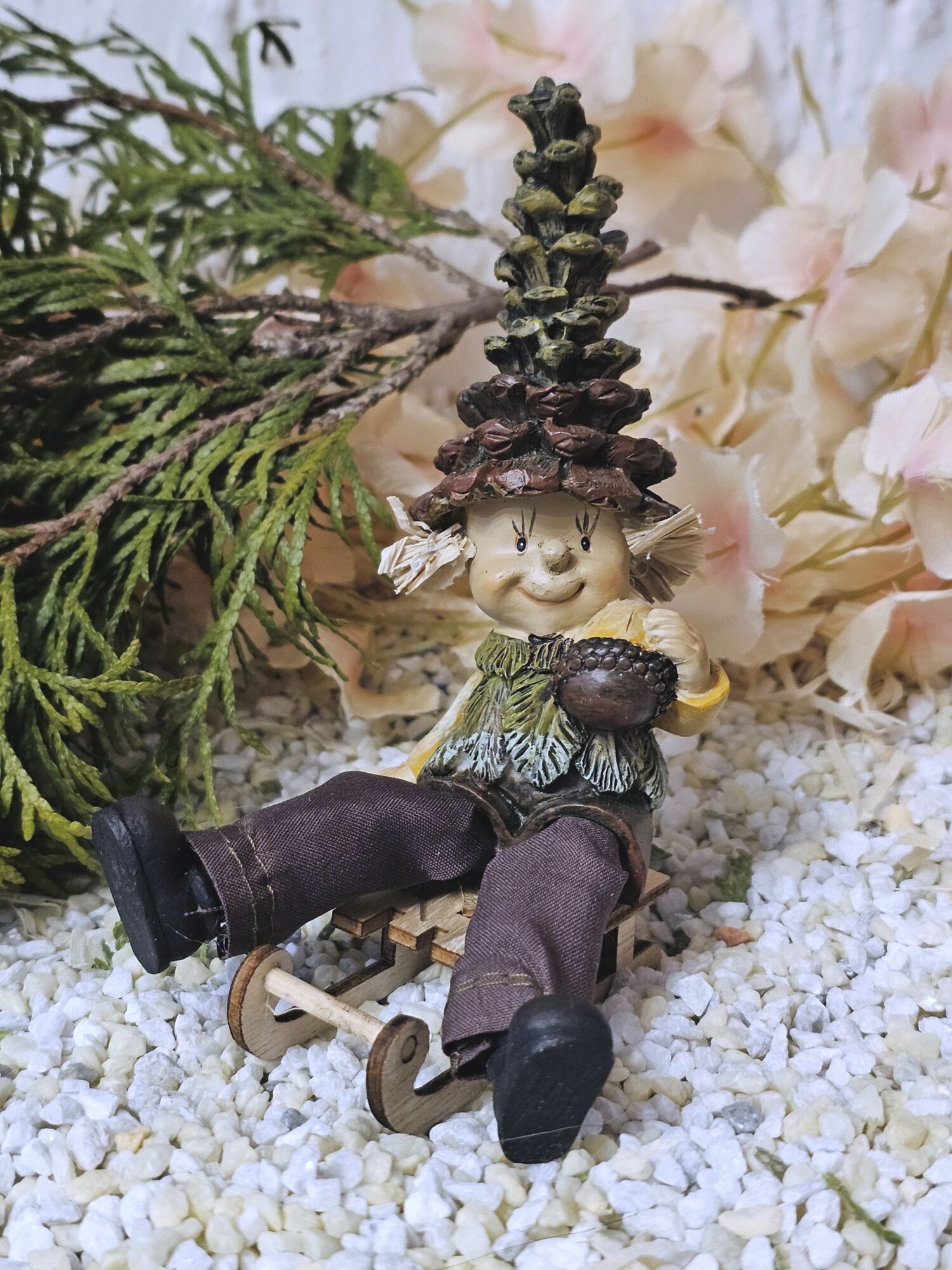 Wichtel- Winterwichtel mit Schlitten und Eichel
