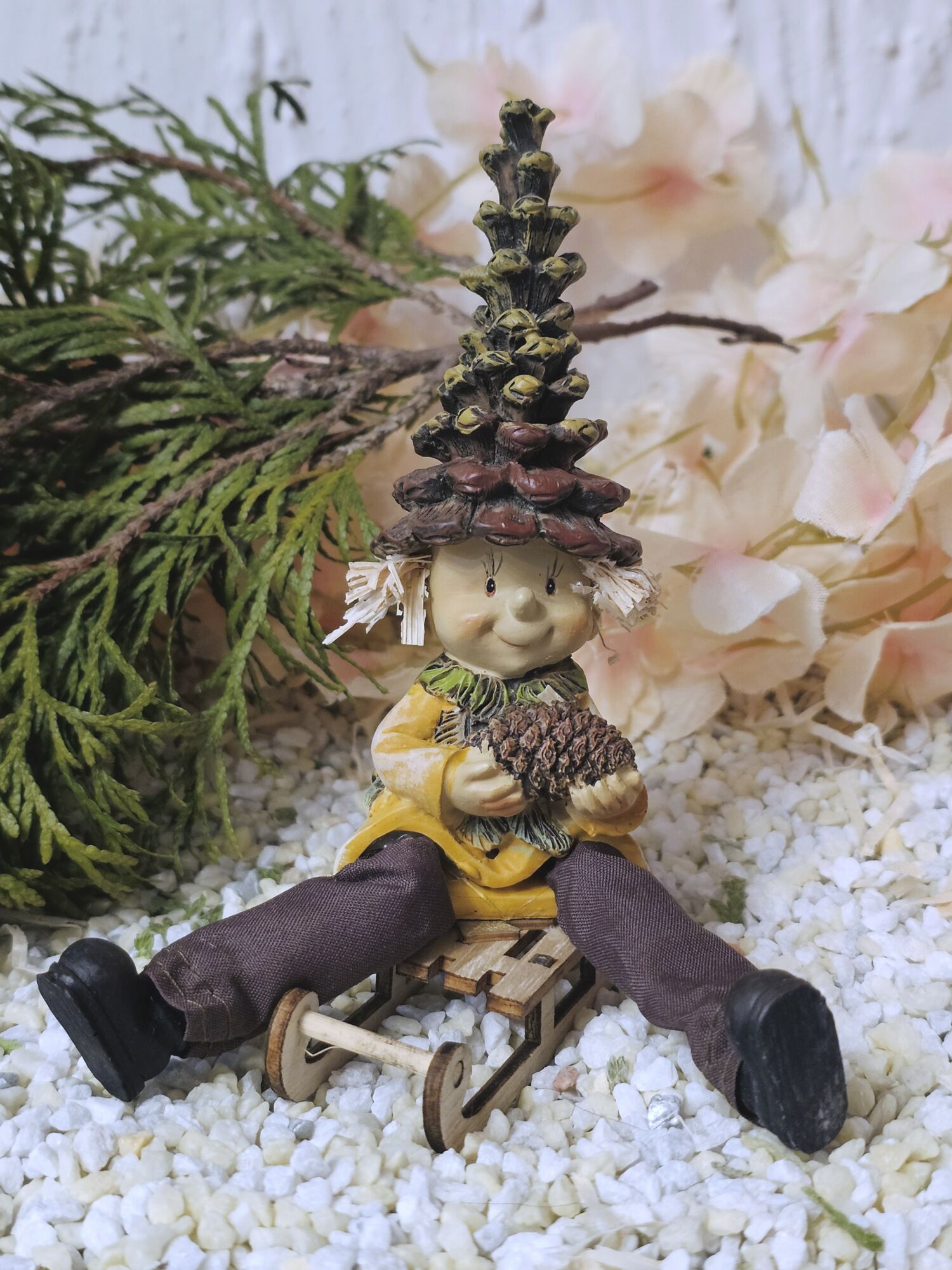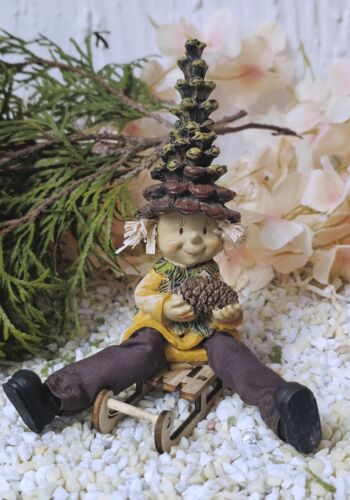 Wichtel- Winterwichtel mit Schlitten und Zapfen