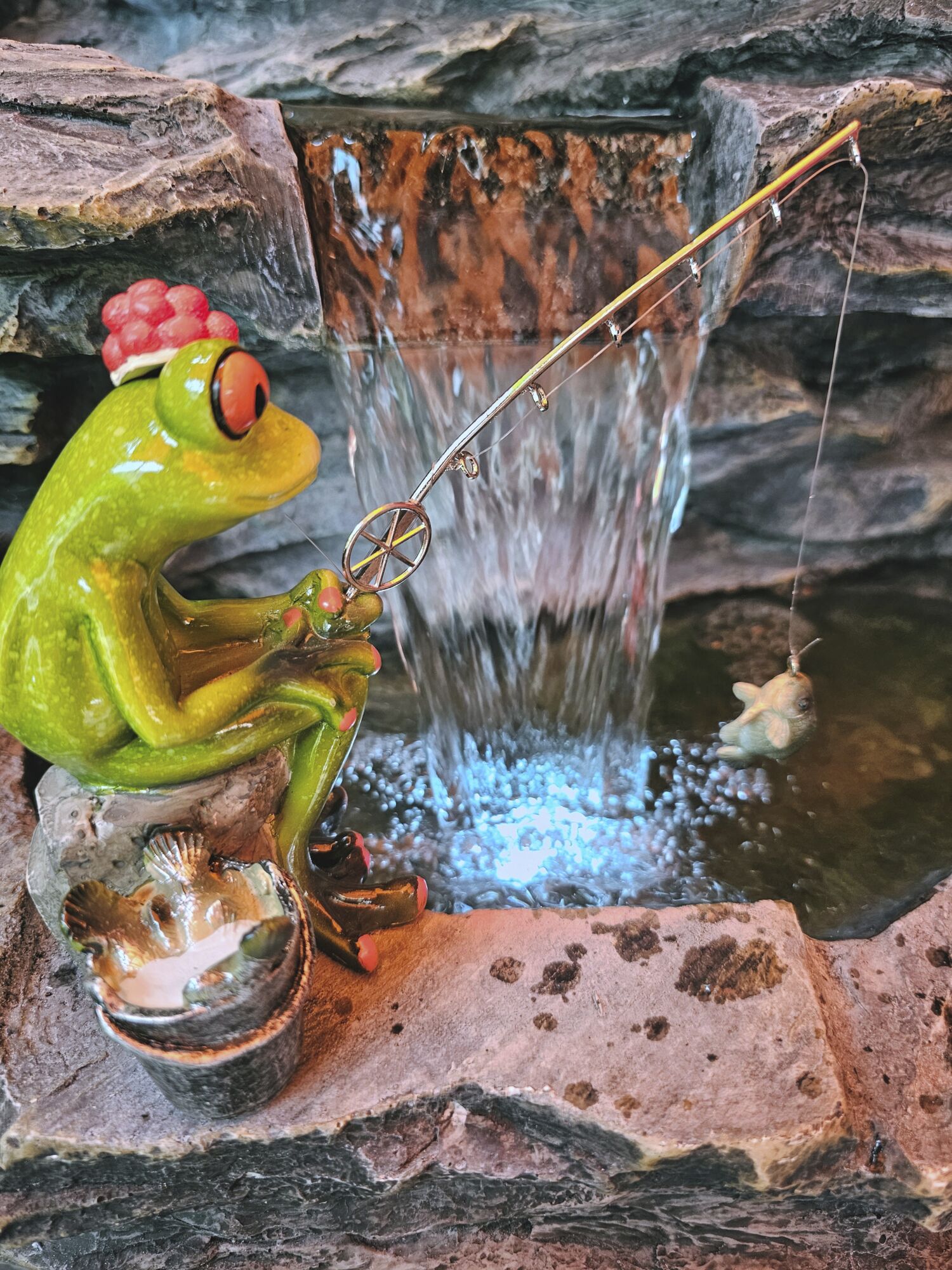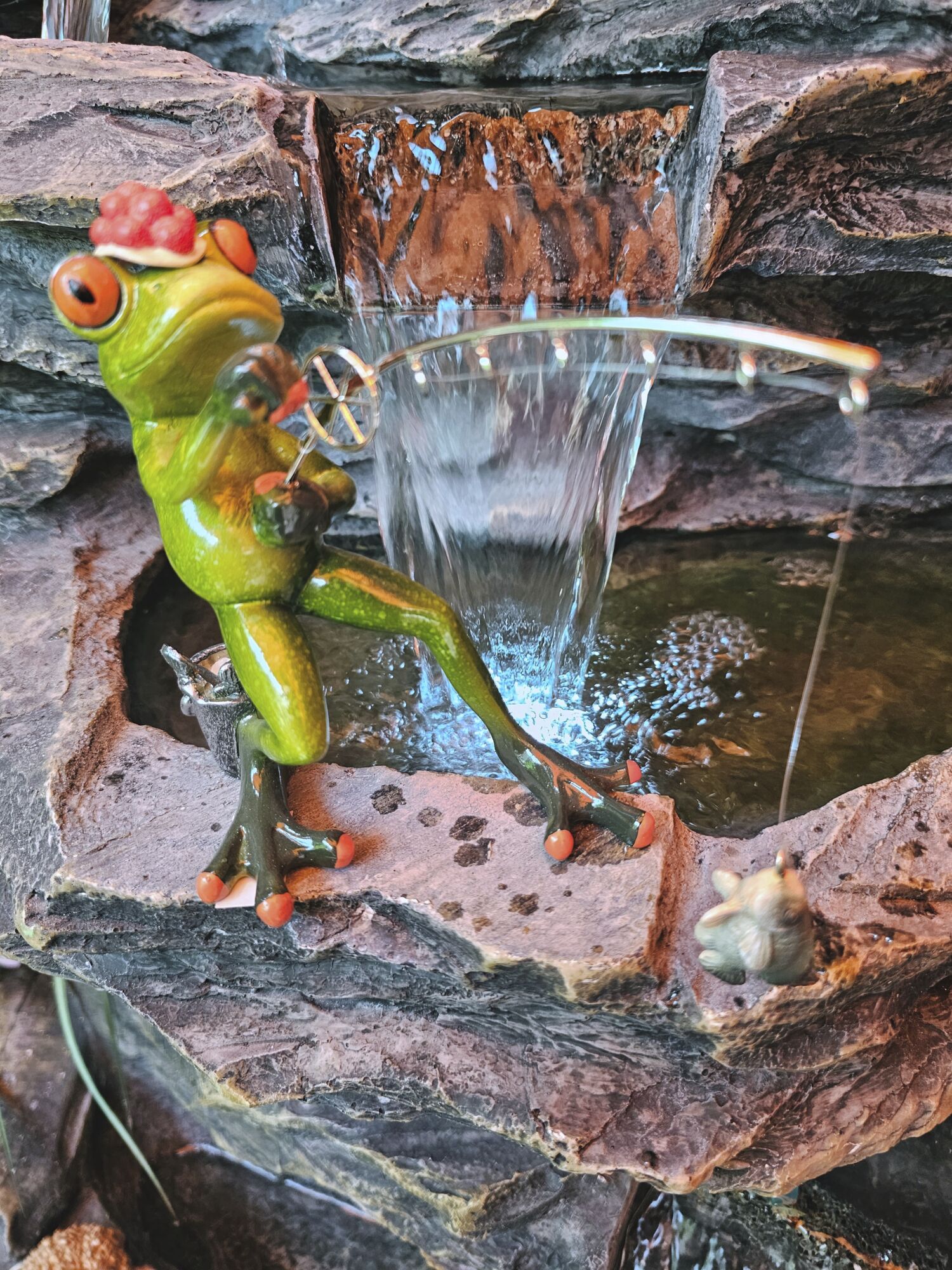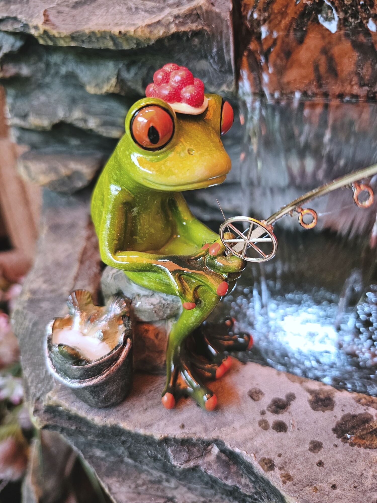 Glücksfrosch Rudi der Angler mit Bollenhut