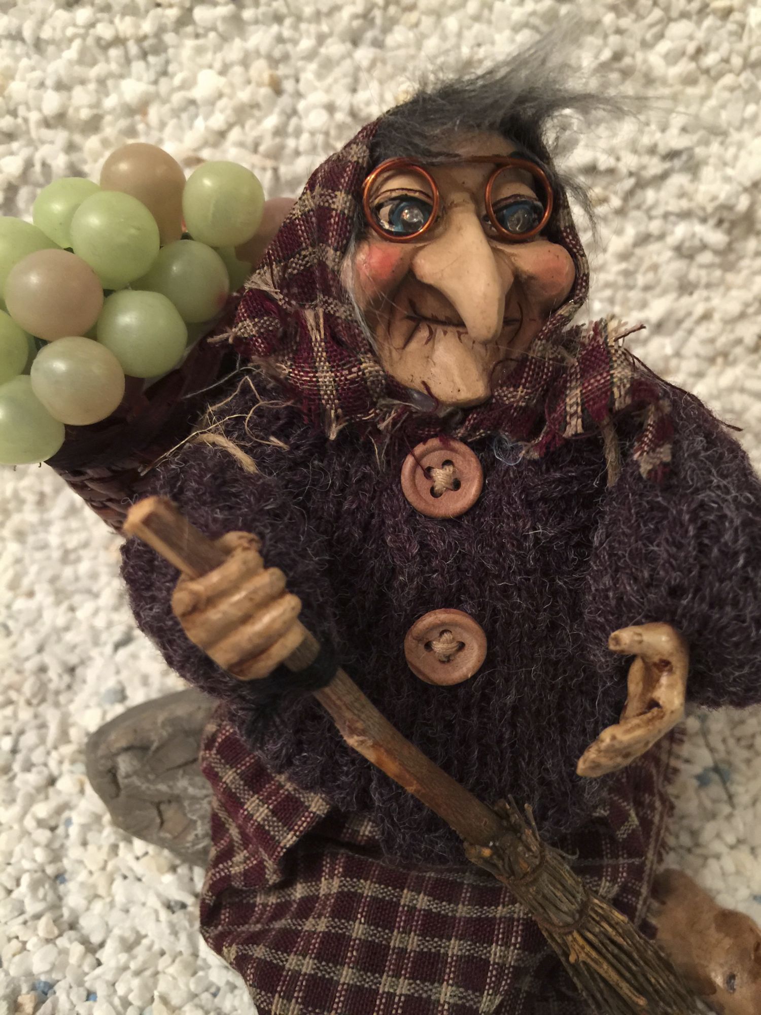 Die lieblichen Hexenaugen, welche durch die Brille schauen, geben dieser niedlichen Hexe einen besonderen Ausdruck. Was perfekt zu ihrem alten Gesicht passen.