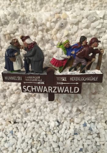 Der Magnet ist liebevoll gestaltet mit Schwarzwaldfiguren, Wanderer und der Magnet ist handbemalt.