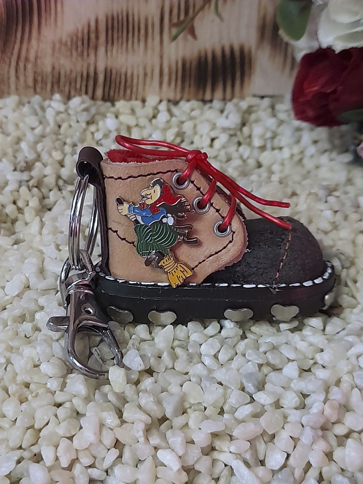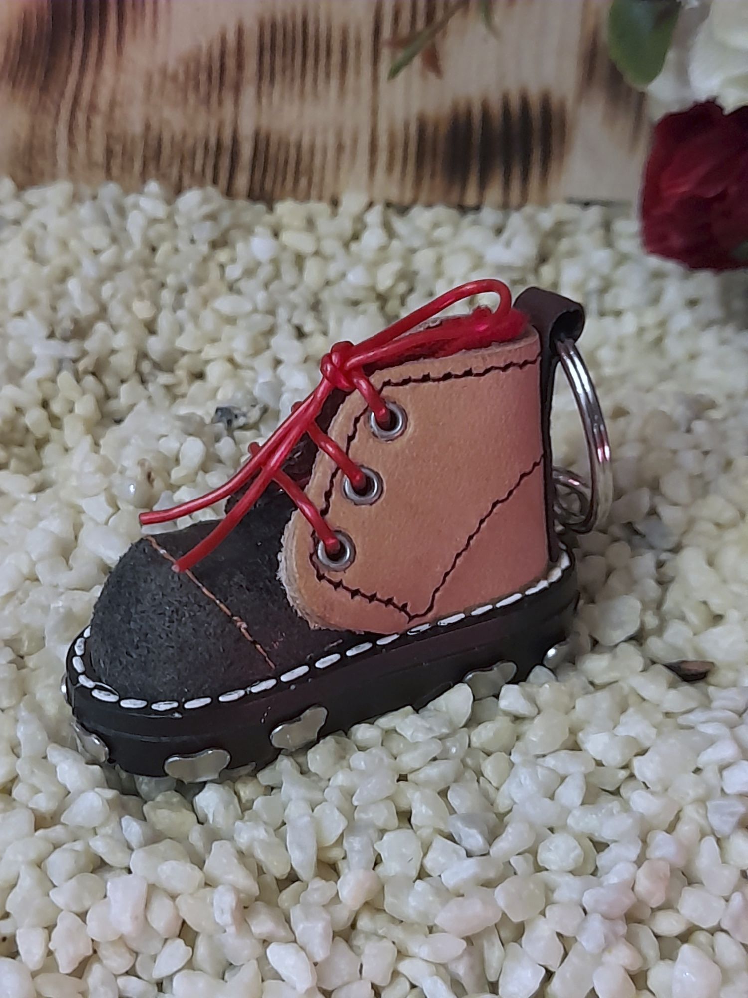 Diese kleinen Miniatur Wanderschuhe sind liebevoll in aufwendiger Handarbeit gearbeitet.