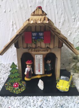 Dieses Wetterhäusle ist besonders aufwendig gearbeitet,mit handbemalten Figuren.
