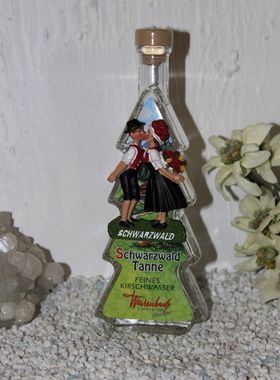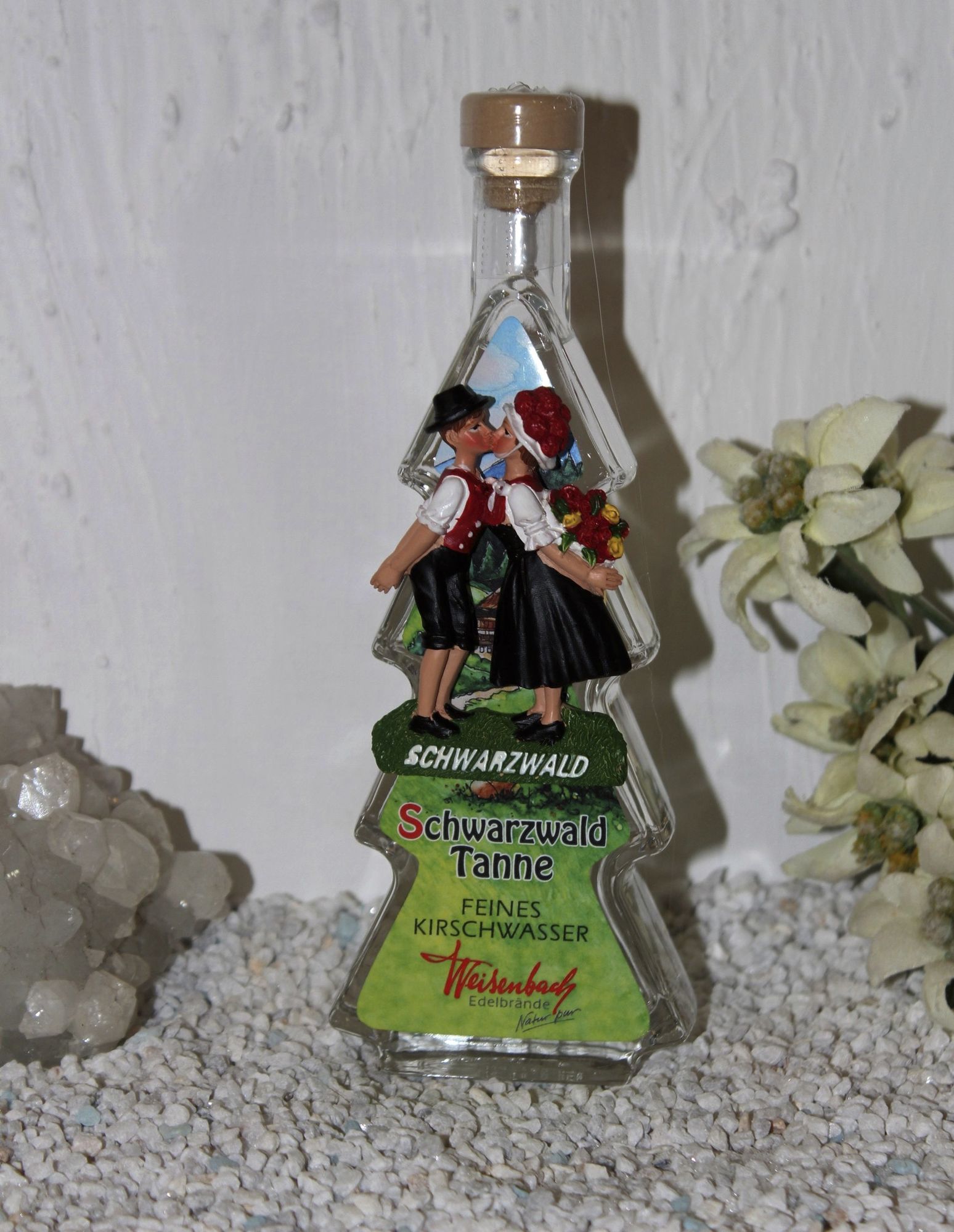 Die Tannenflasche ziert ein knutschendes Schwarzwaldpaar.
