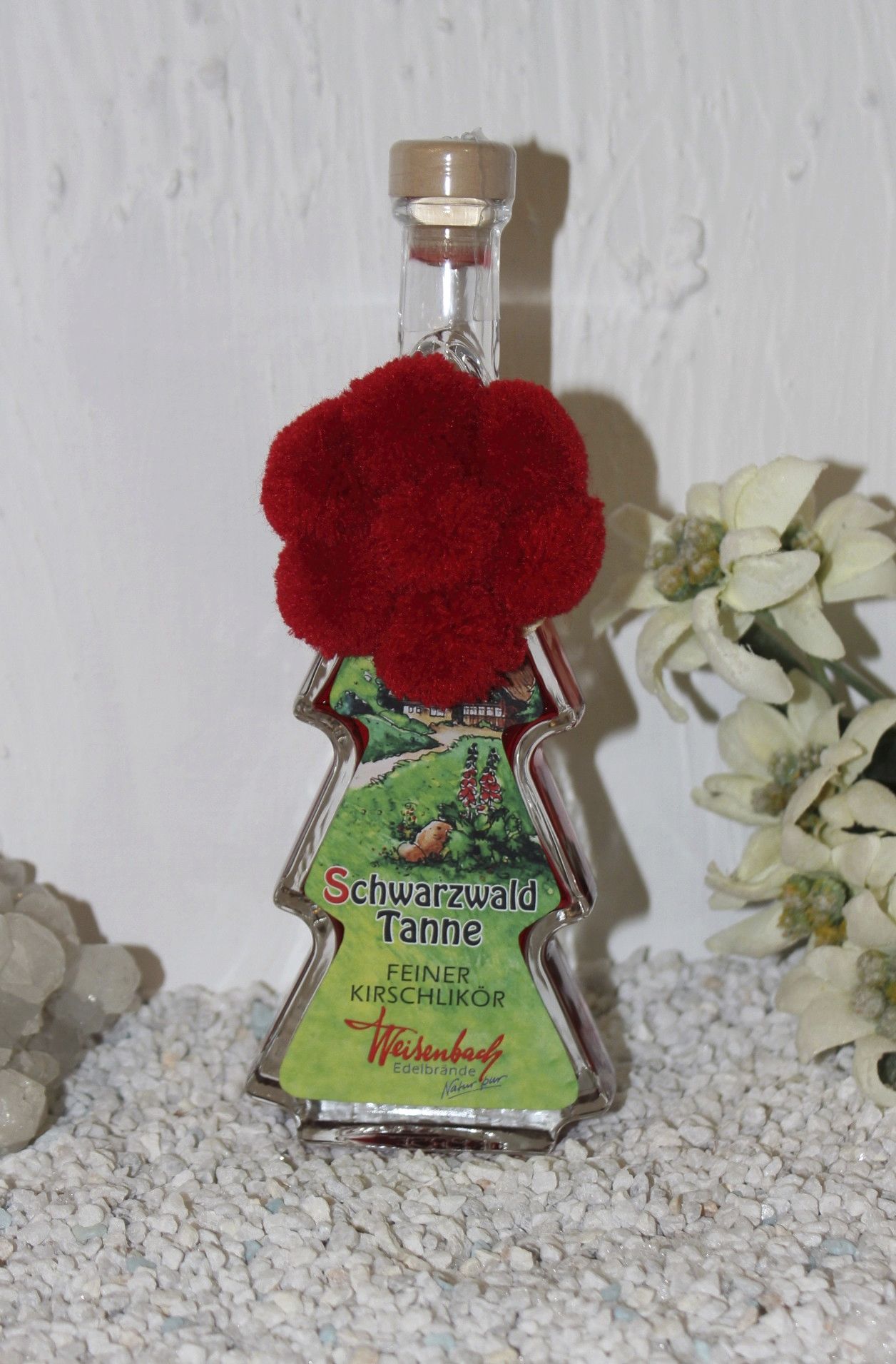 Verziert wird die Tannenflasche mit einem Schwarzwälder Bollenhut