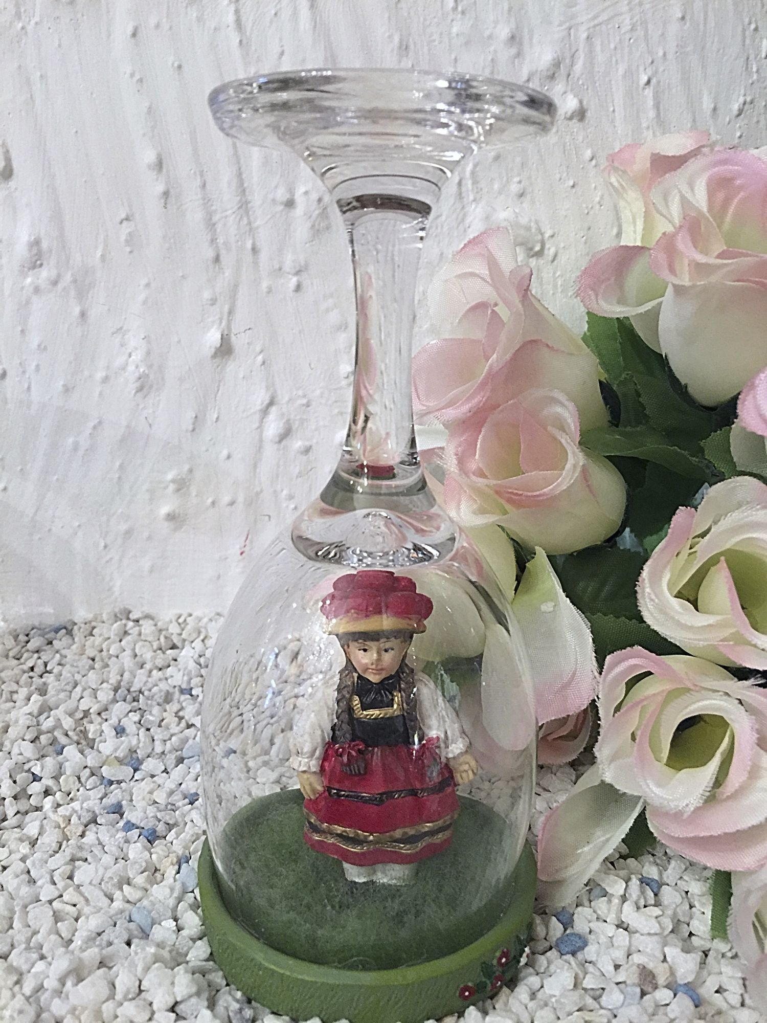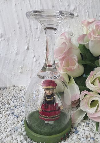 Sehr schön gearbeitet und handbemalt. Die Schwarzwälderin steht auf einer grünen Wiese und ist von einem echten Glas umgeben. Hier kommt Schwarzwälder Harmomie und Gemütlichkeit auf.