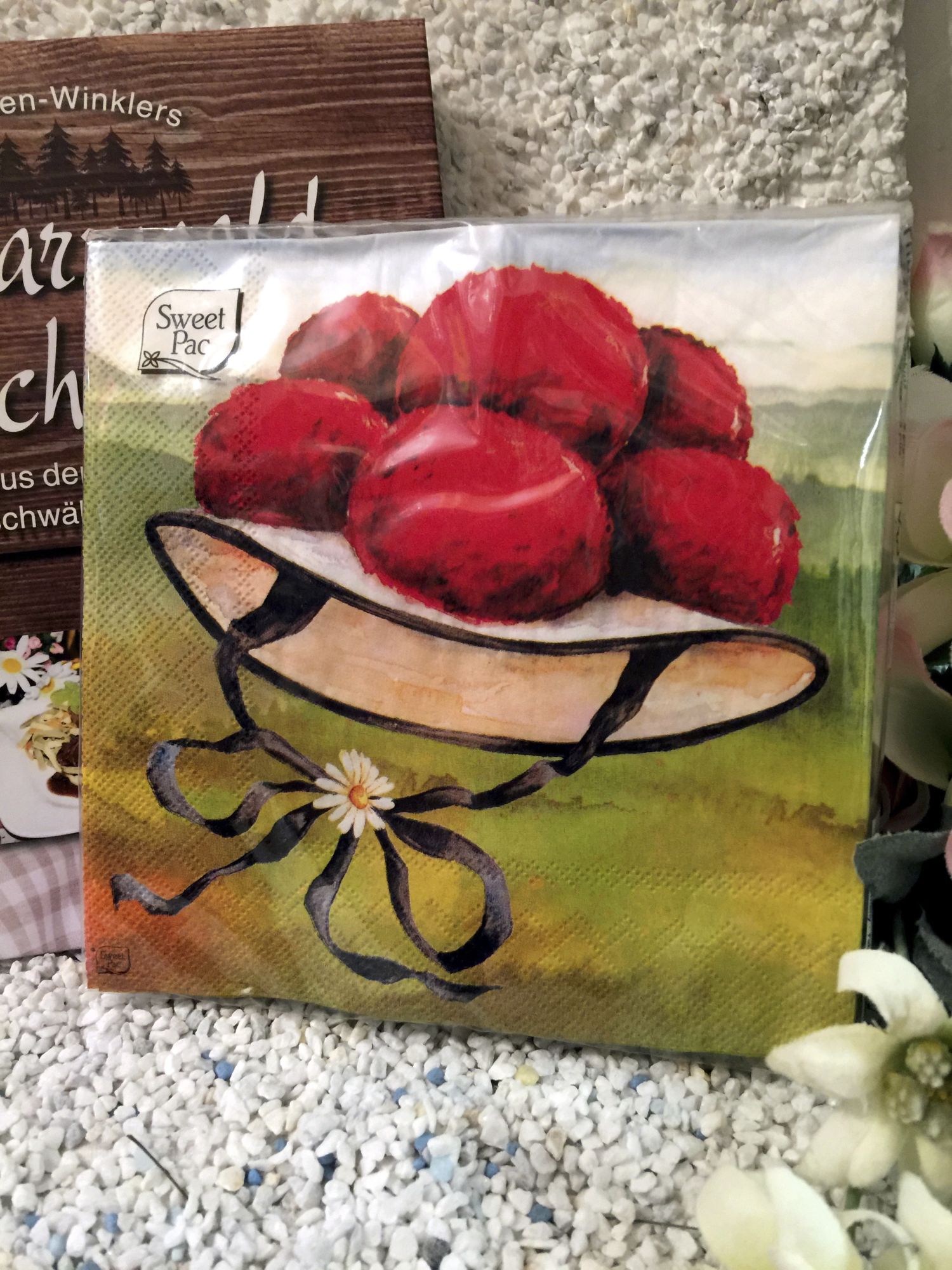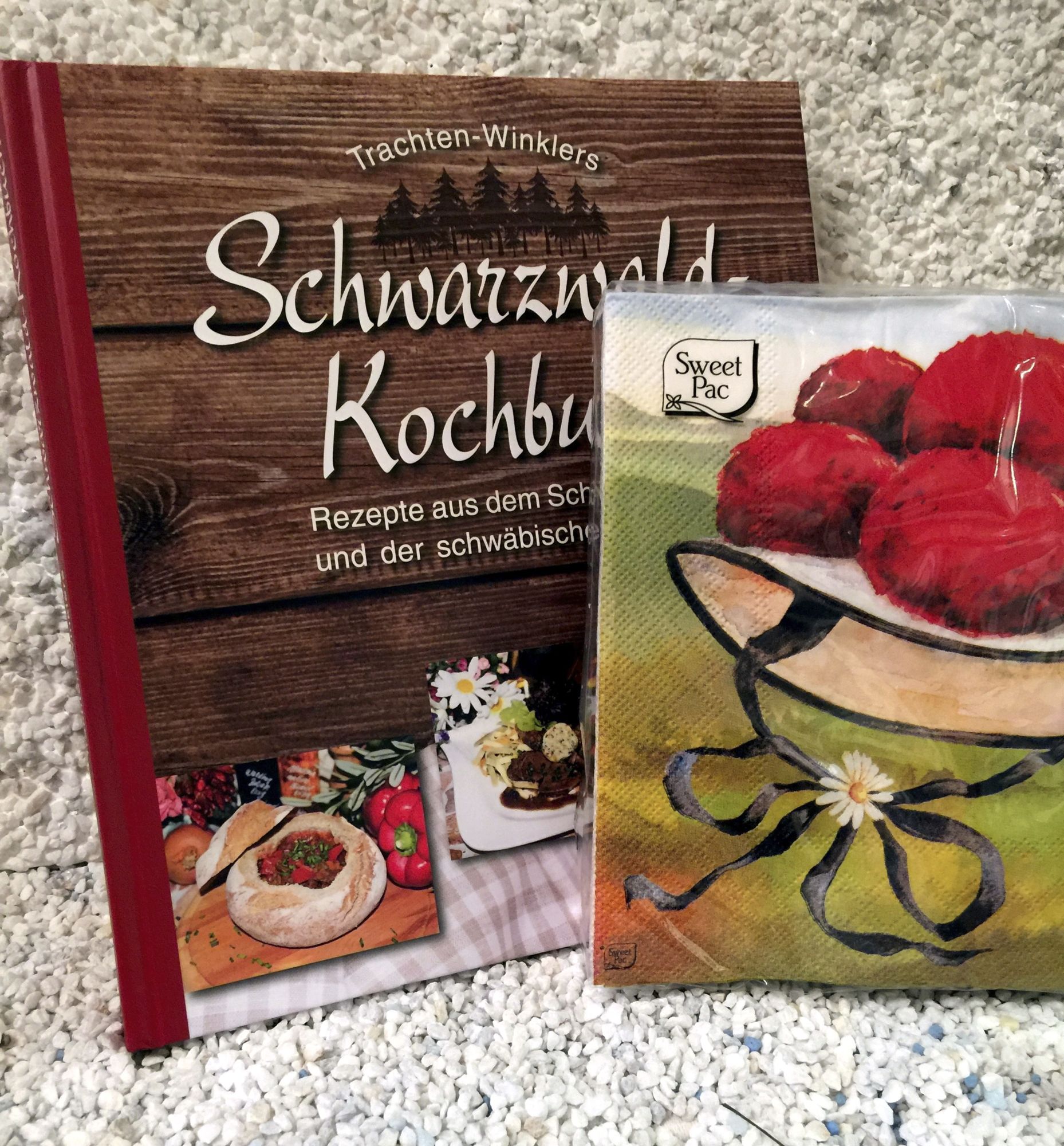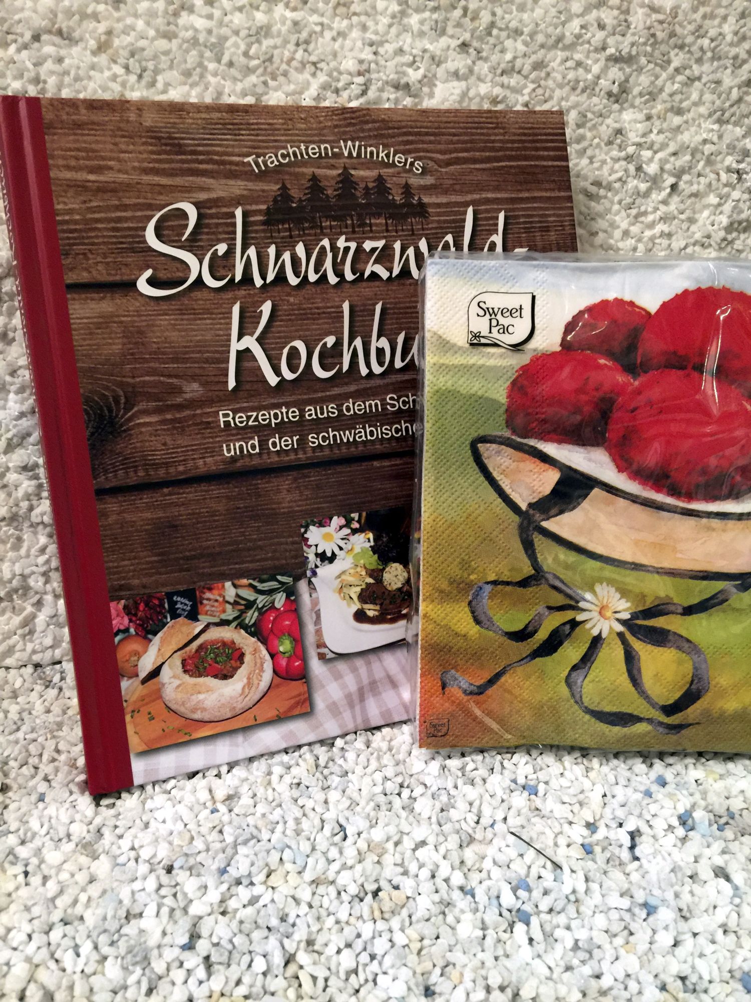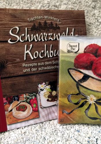Zu diesem Kochbuch liefern wir schöne Schwarzwaldservietten. Mit tollen Schwarzwaldmotiven.