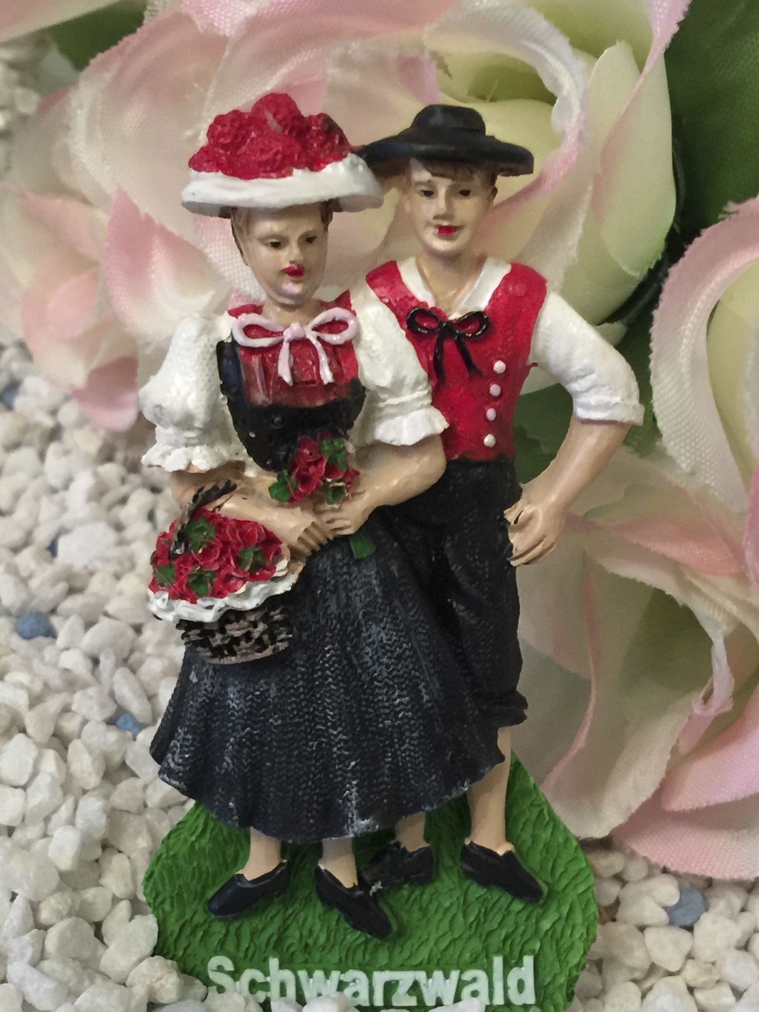 Hier ein schöner handbemahlter Magnet mit dem berühmten Schwarzwaldpaar.