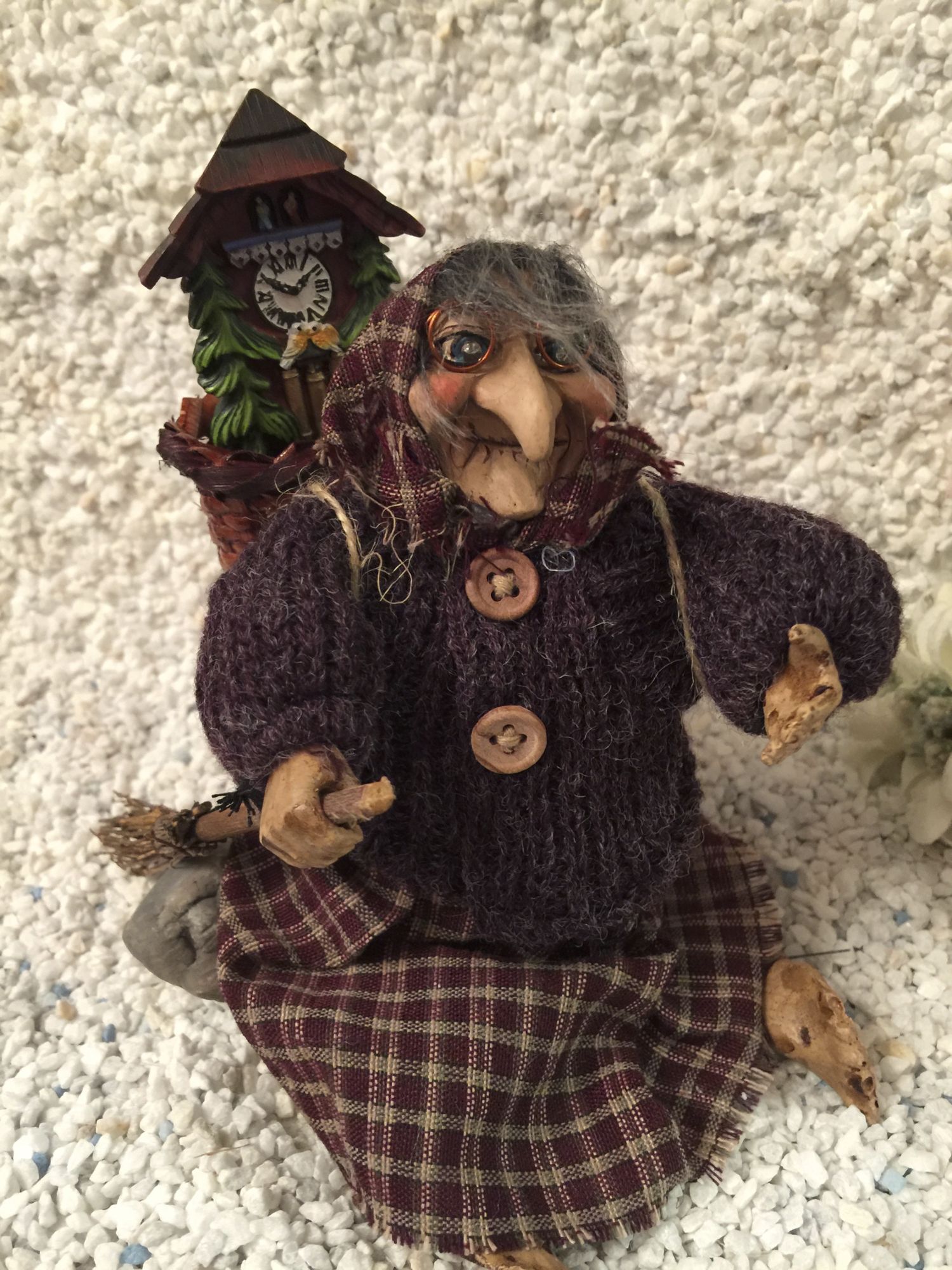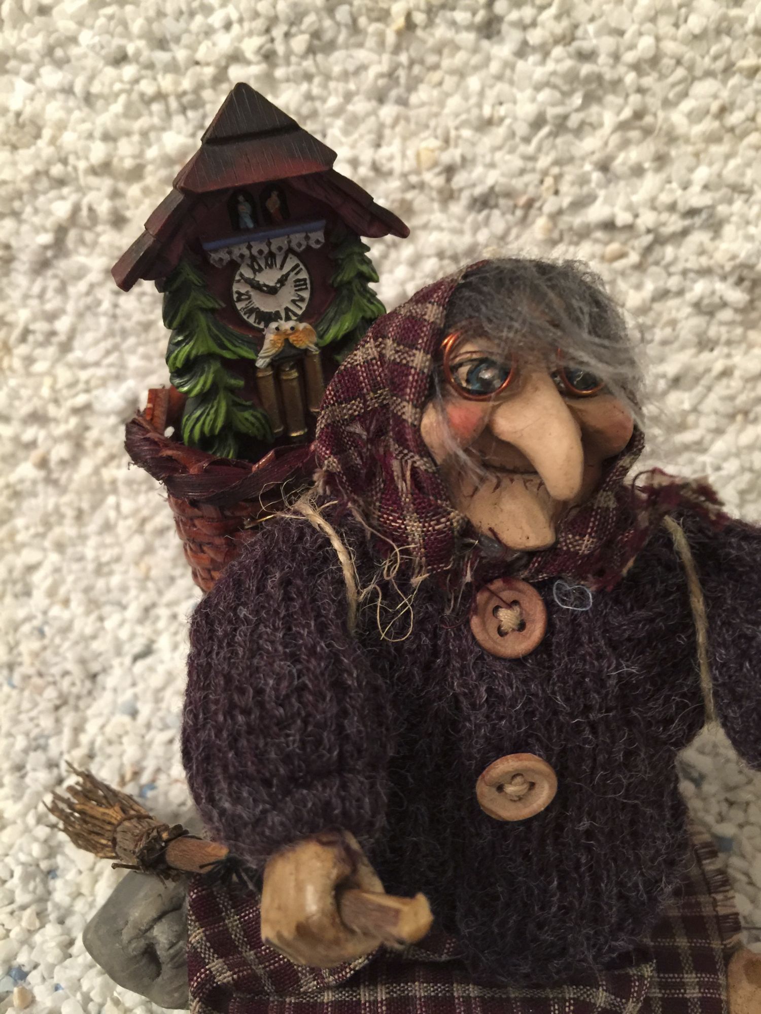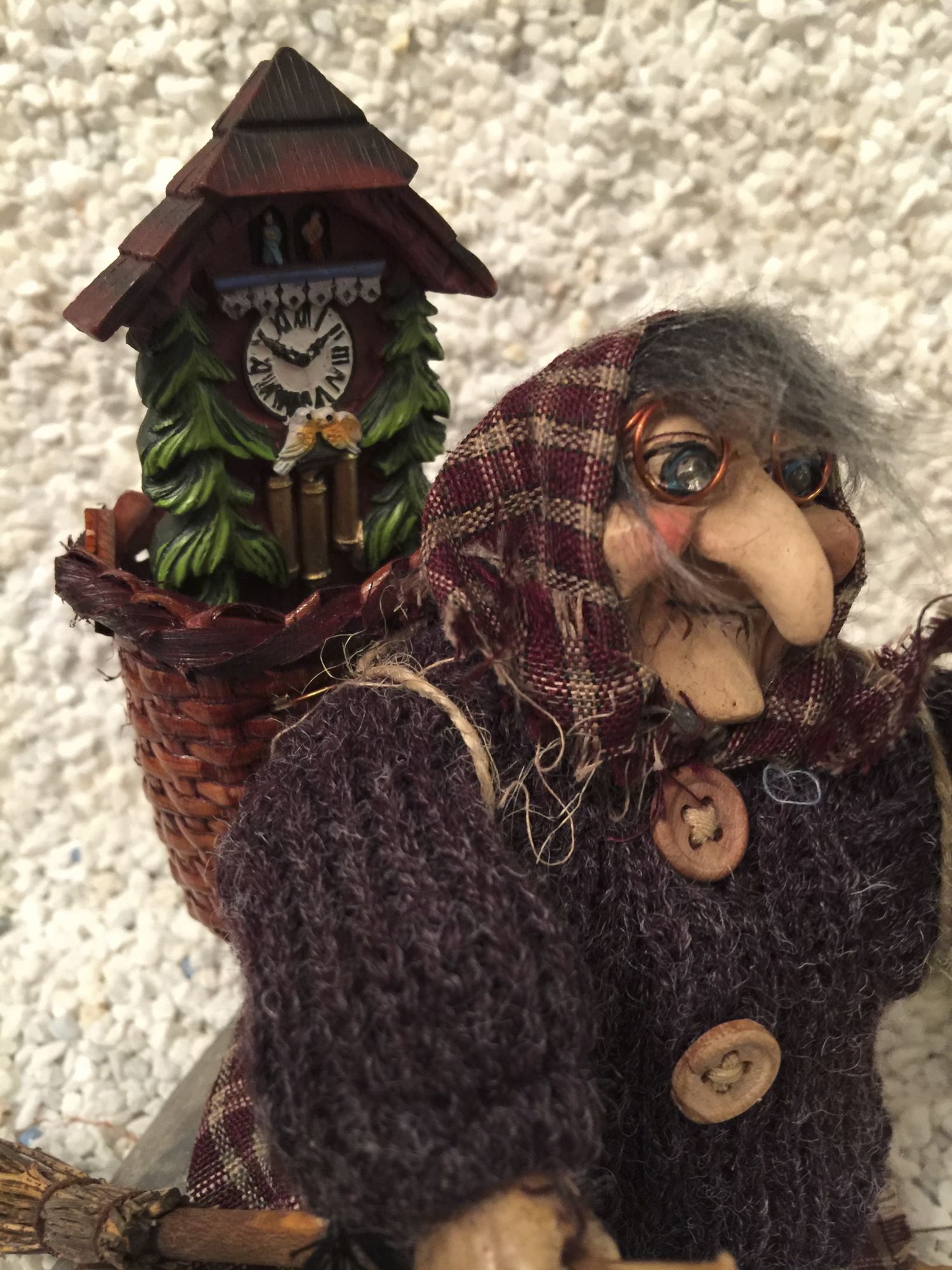 Die lieblichen Hexenaugen, welche durch die Brille schauen, geben dieser niedlichen Hexe einen besonderen Ausdruck. Was perfekt zu ihrem alten Gesicht passen.