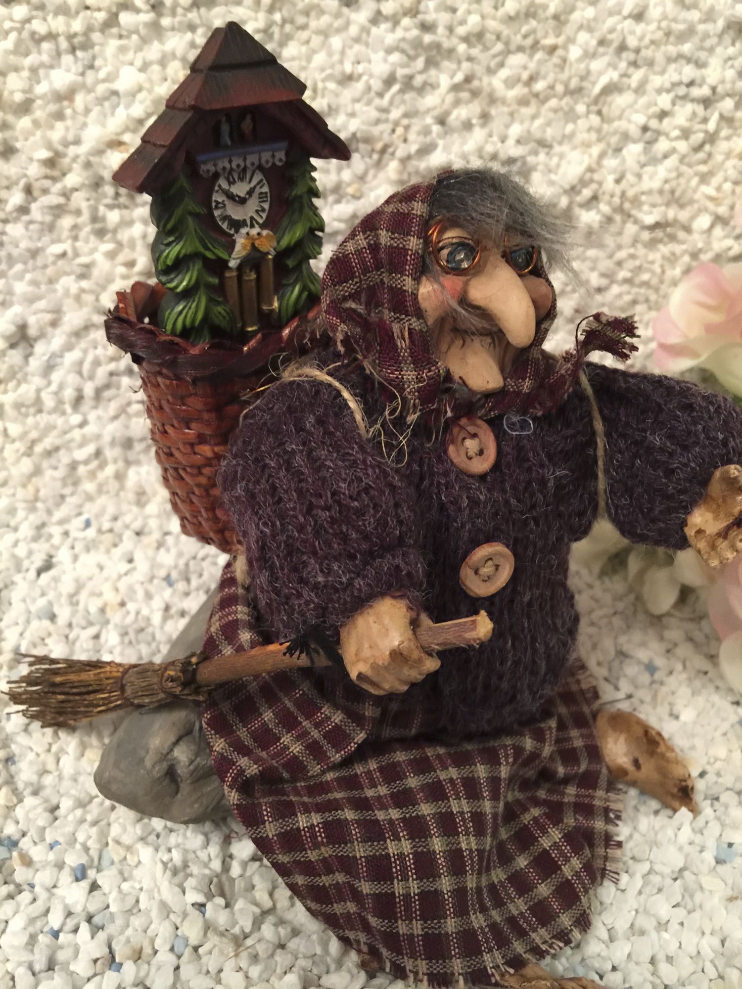 Waldhexe "Feldberg" mit Korb und Standuhr