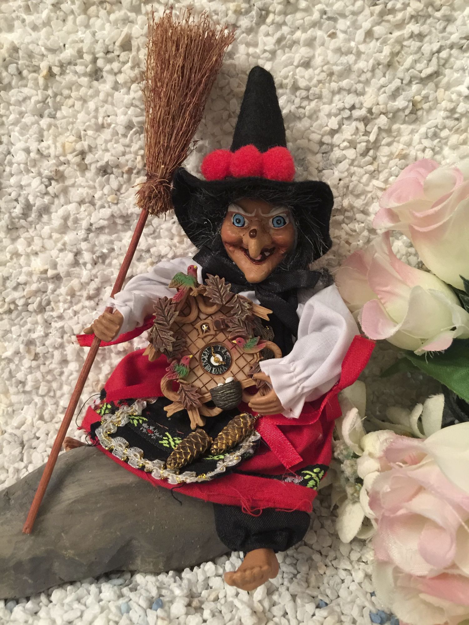 Hexle im Schwarzwaldstiel und einer handbemahlter Kuckucksuhr.