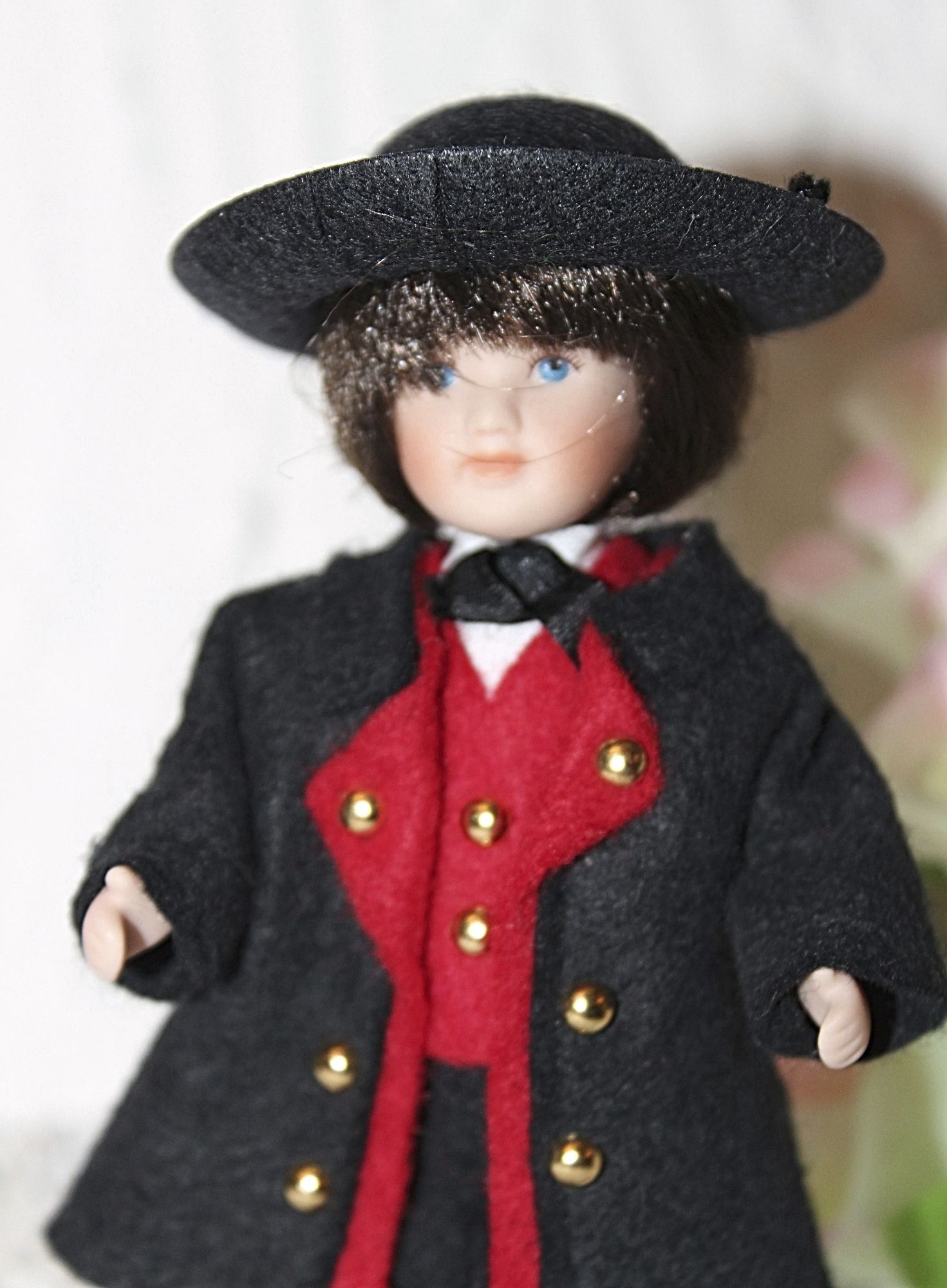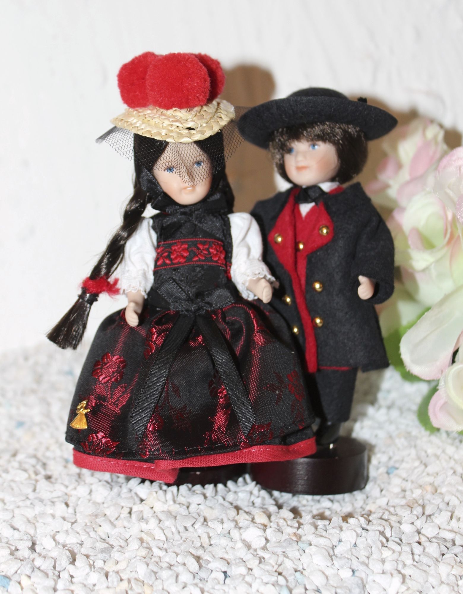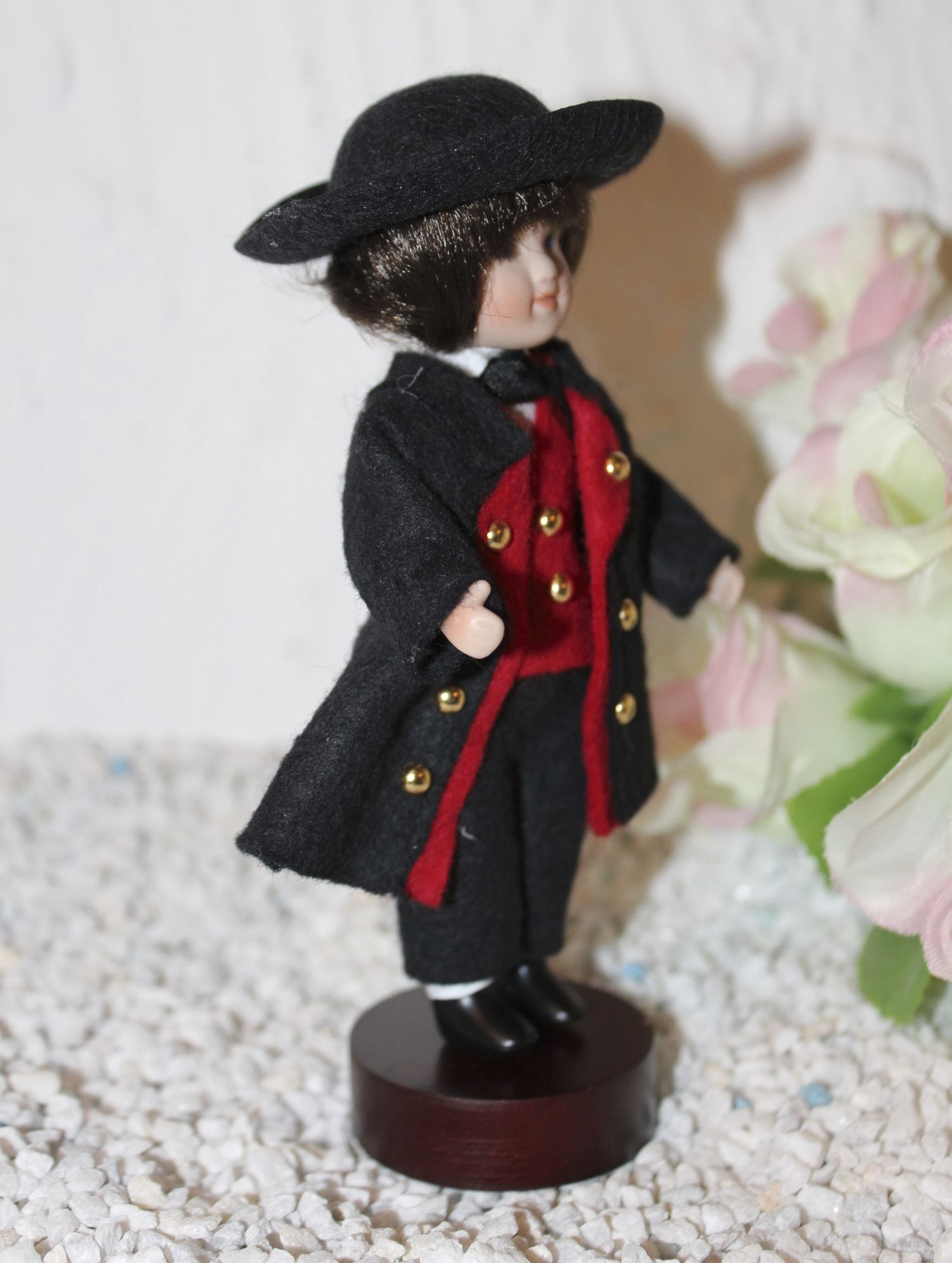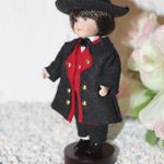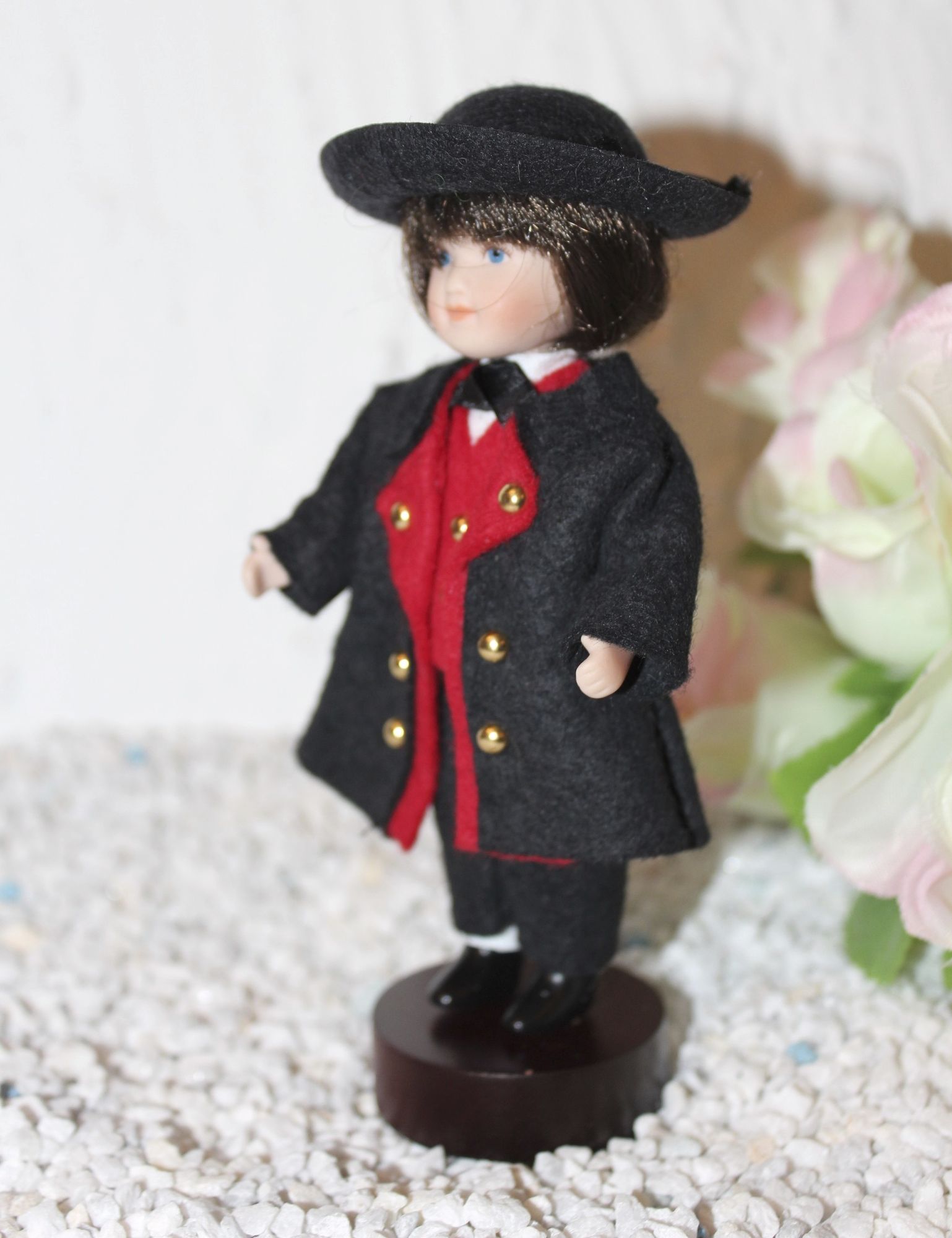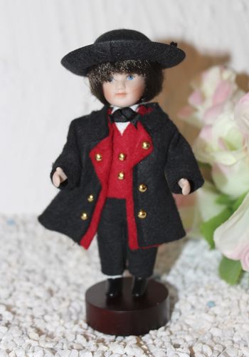Hier zeigen wir Ihnen einen typischen Schwarzwaldbub mit schwarzem Frack, roter Weste und Goldknöpfen, dazu die Trachtenbundhose, die weißen Strümpfe und die schwarzen Schwarzwaldschuhe