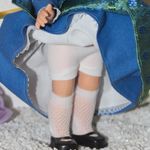Dirndl-Tracht mit Schürze,Bluse,Rock,Unterrock,Spitzenhöschen, Strümpfe und Schuhe.