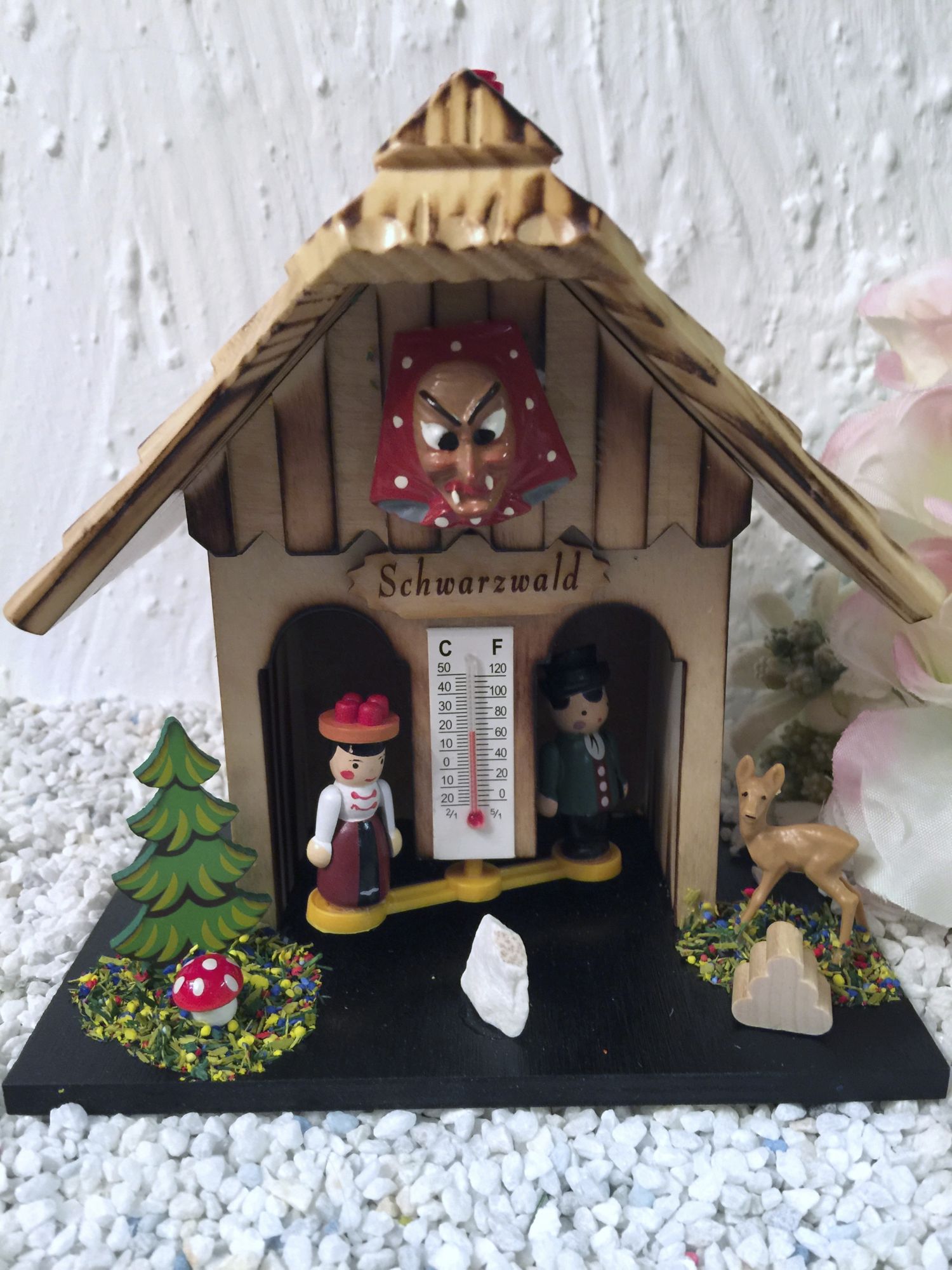 Das Wetterhäusle ziert ein echtes Holzschild mit der Aufschrift "Schwarzwald" und einem Thermometer.