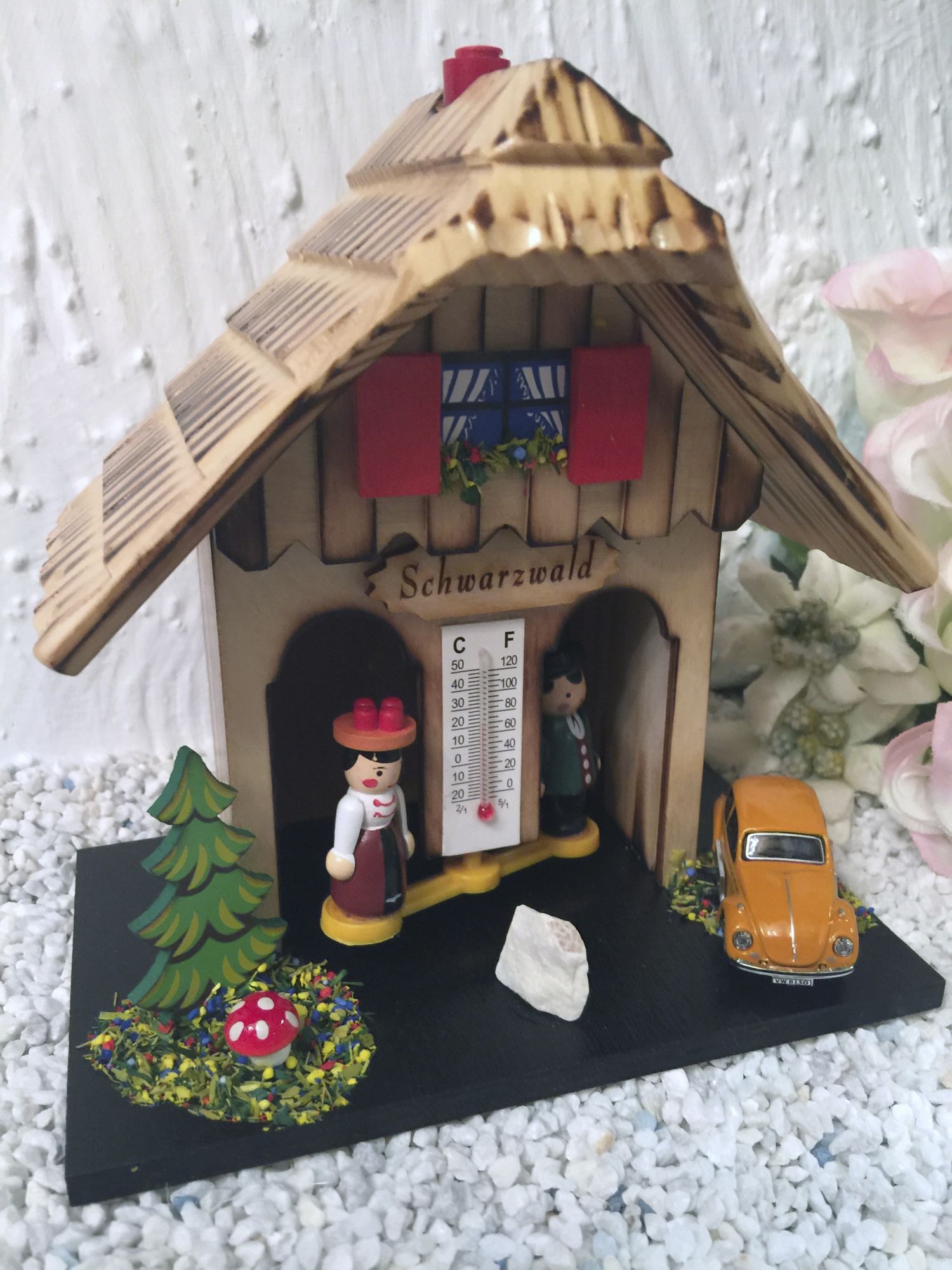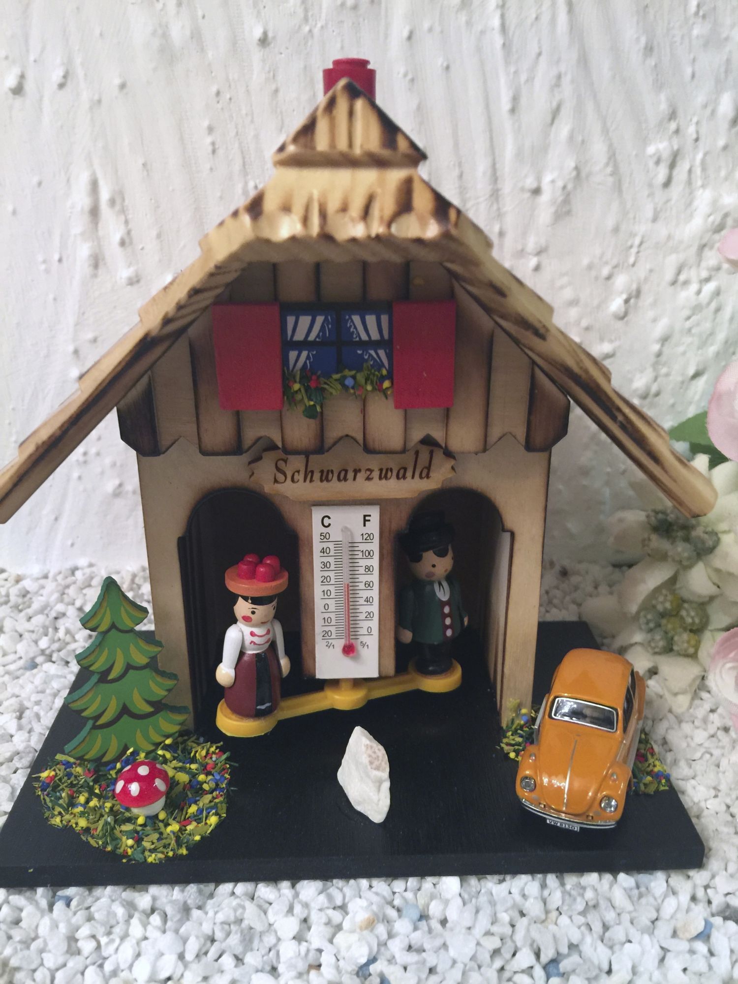 Dieses Wetterhäusle ist besonders aufwendig gearbeitet,mit handbemalten Figuren.