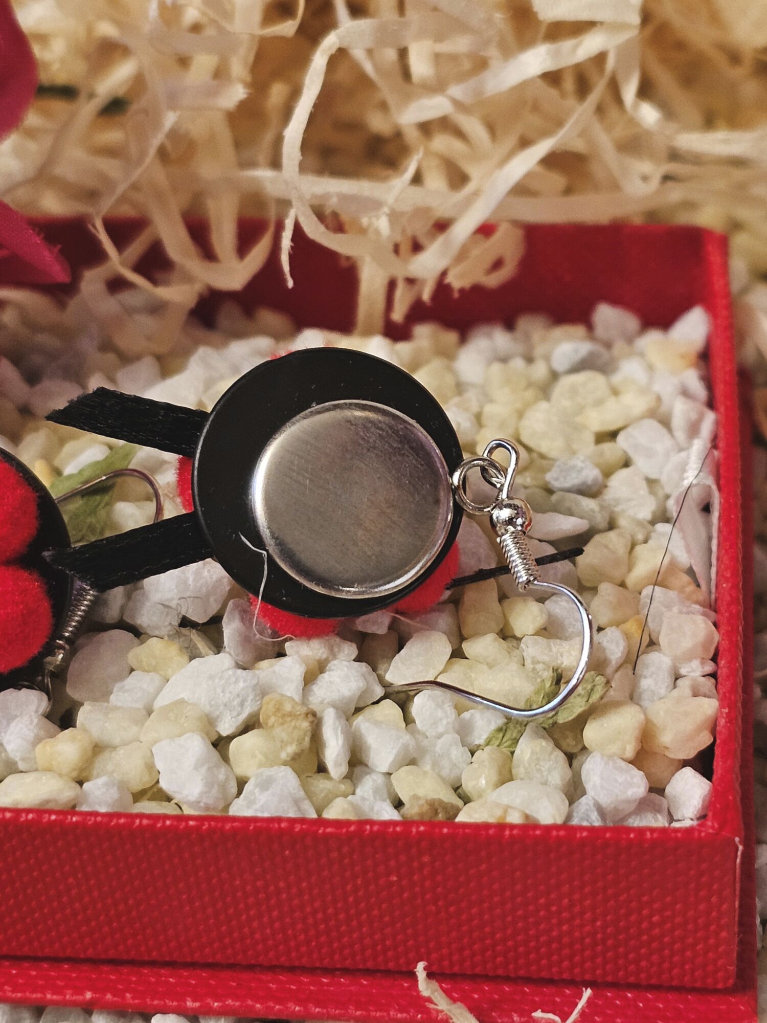 Hier bieten wir Ihnen zauberhafte Ohrringe im Schwarzwaldlook.