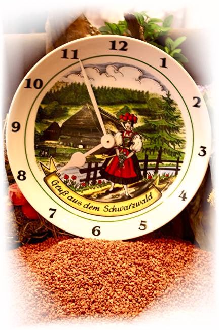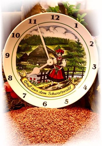 Hier zeigen wir Ihnen einen schönen Wandteller in Form einer Schwarzwalduhr.